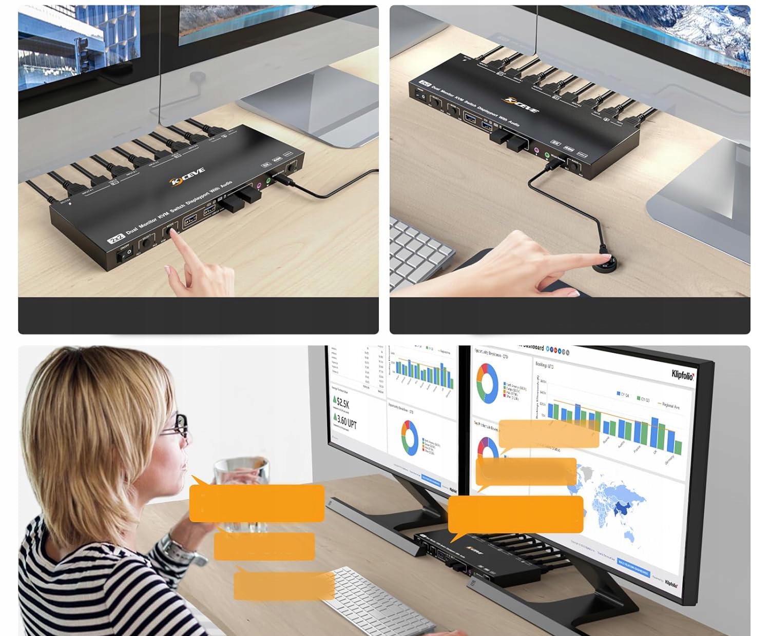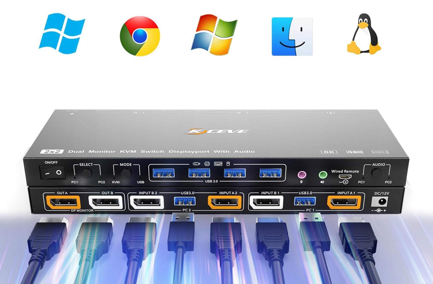 Dual DP KVM 2 ПК 2 Переключатель 2 Мониторы 4K@144 Гц, KVM с голосовым управлением, аудио -вывод, режимы USB переключения для USB 3.0, Displayport 1.4, части клавиатуры KVM. Модель: KC-KVM202DPU h1>