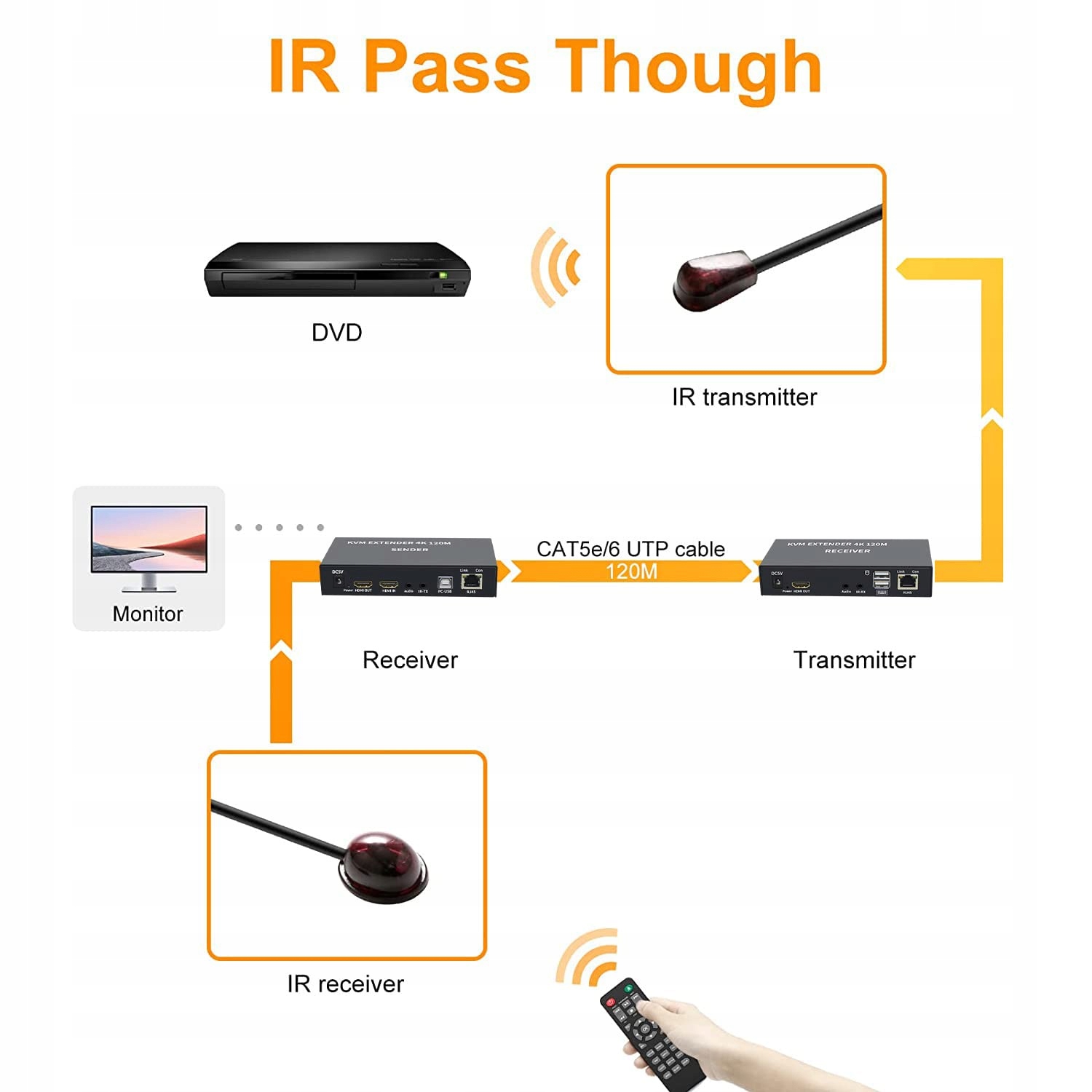 - 5,5) При использовании расстояния удлинения расстояние передачи сигнала с использованием кабеля Cat-5E/6 достигает 120 метров, в то время как в случае нормальных кабелей HDMI расстояние превышает 10 метров, его следует отрегулировать. 6) Совет: устройство может поддерживать 4K 30 Гц, только стандартный выход - 1920 x 1080p, если вам нужно разрешение 4K. 30 Гц, простой в передатчике, чтобы подключить с ними 4K -телевизор, благодаря тому, что выход приемника может быть 4K 30 Гц.