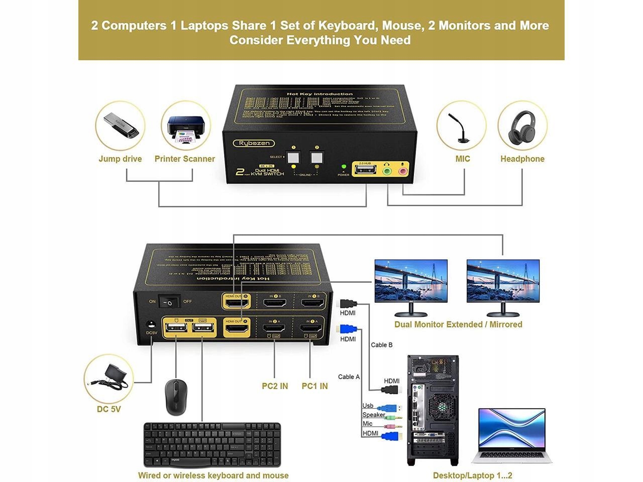 KVM-переключатель HDMI Rybozen