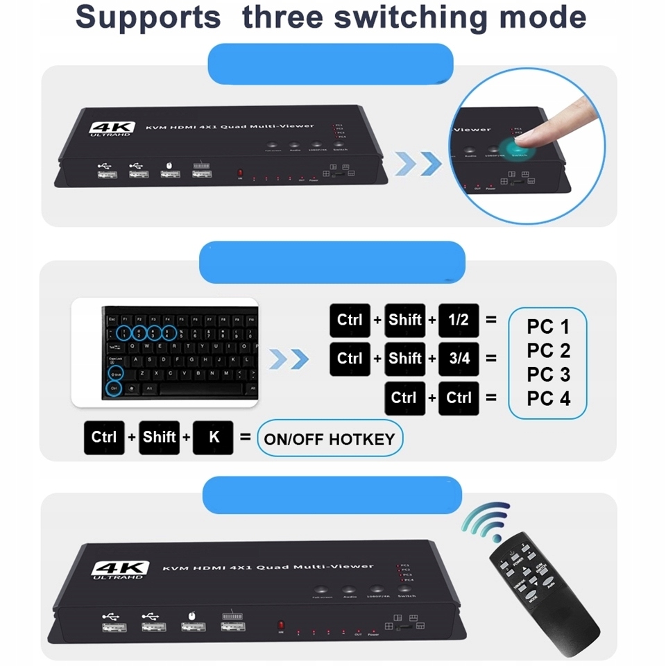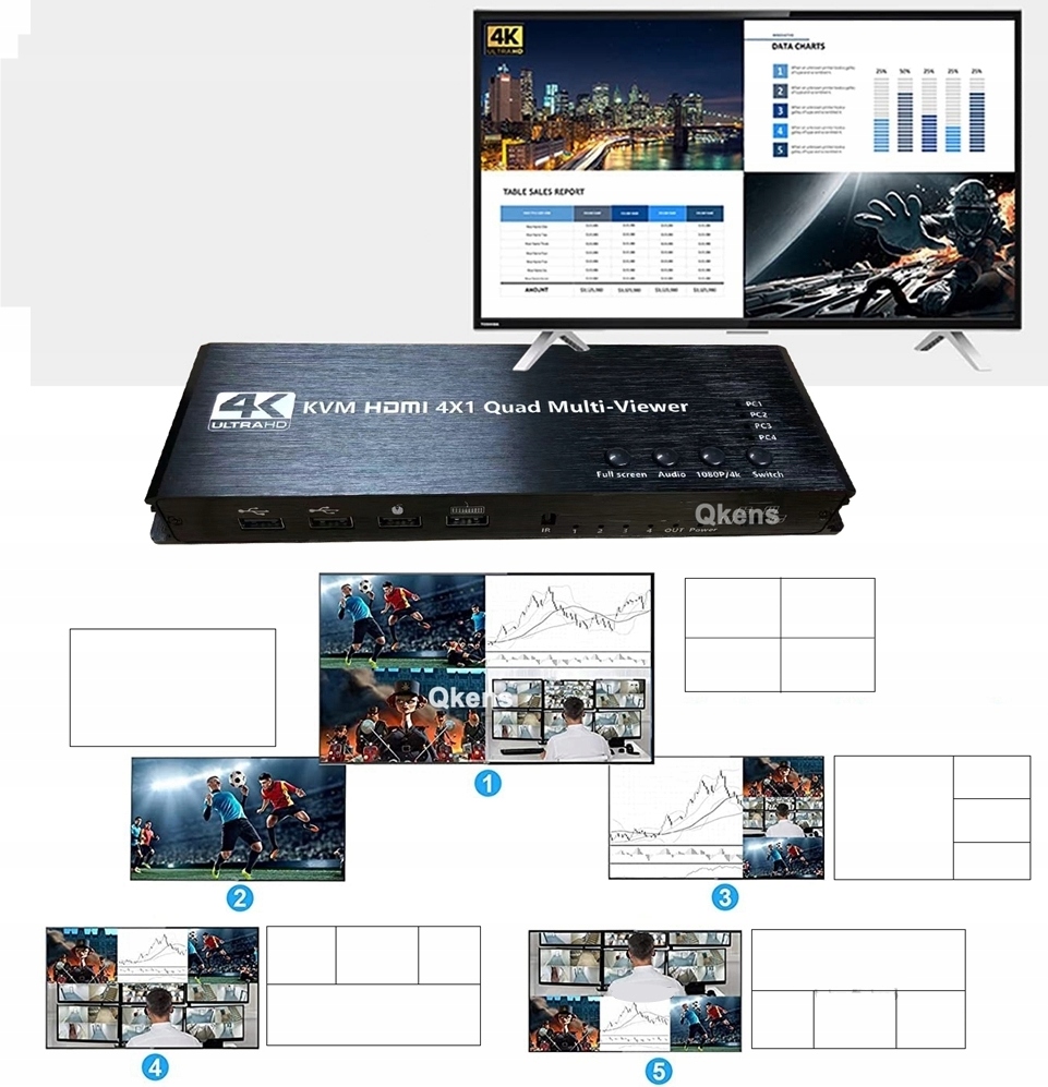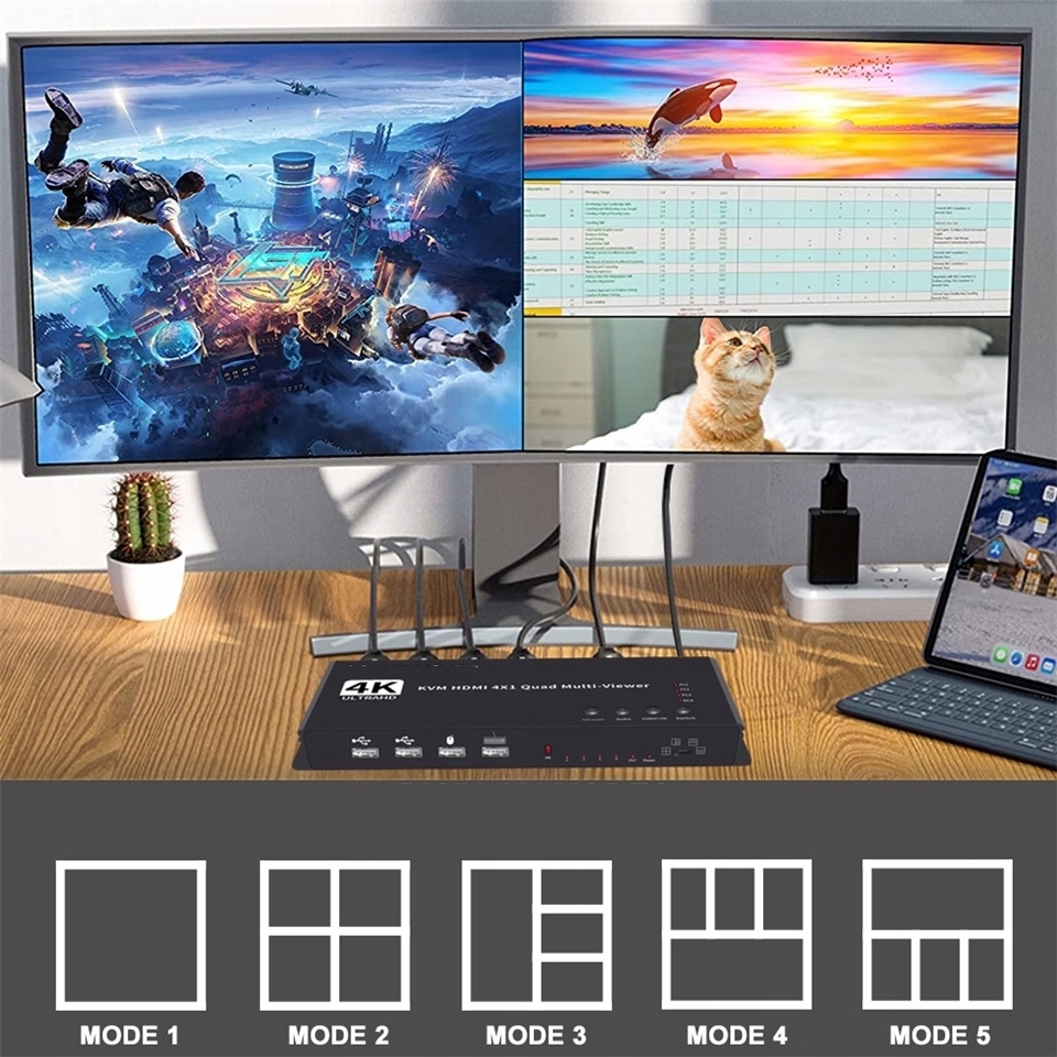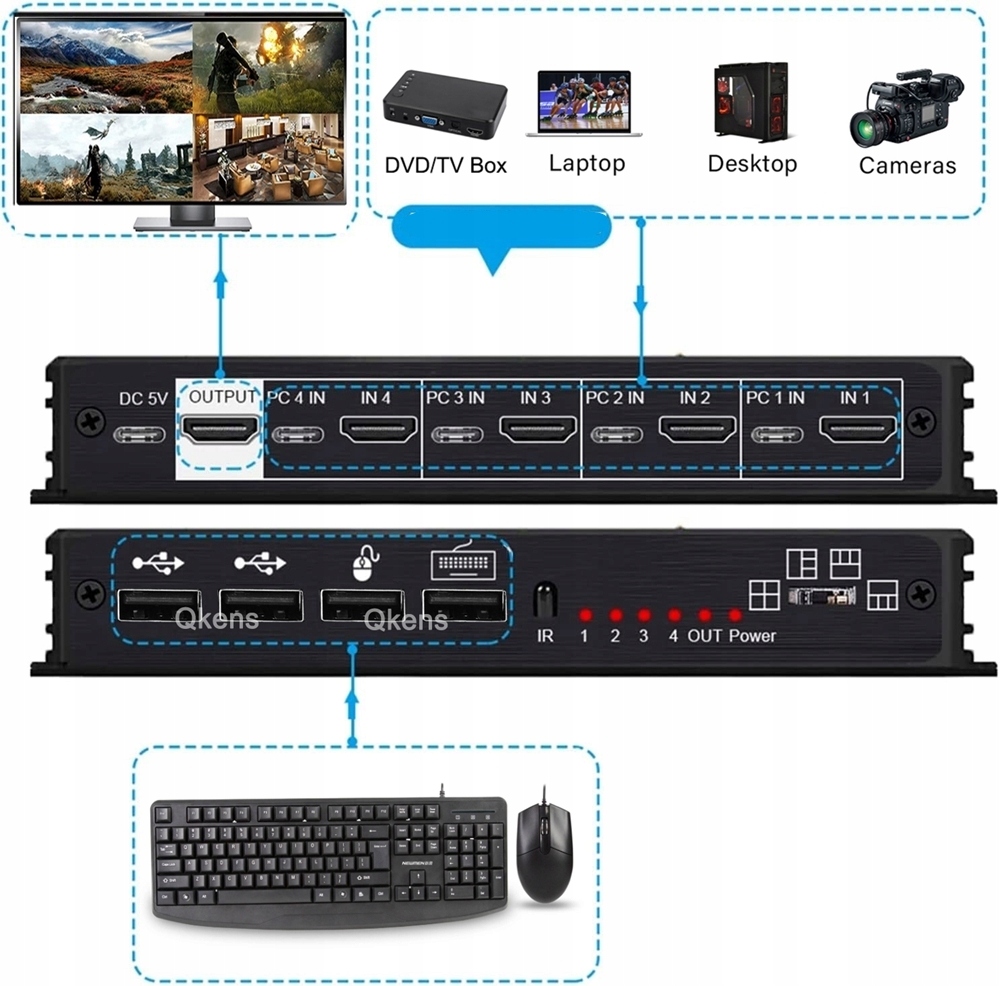 KVM-ПЕРЕКЛЮЧАТЕЛЬ HDMI 4x1 РАЗДЕЛИТЕЛЬ 4xUSB МУЛЬТВЬЮЕР