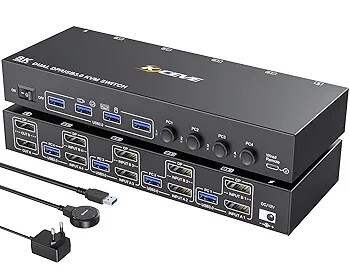 KVM-перемикач KCEVE 8K DP для 4 комп'ютерів, 2 монітори, USB 3.0, 8K@30Hz, 4K@144Hz