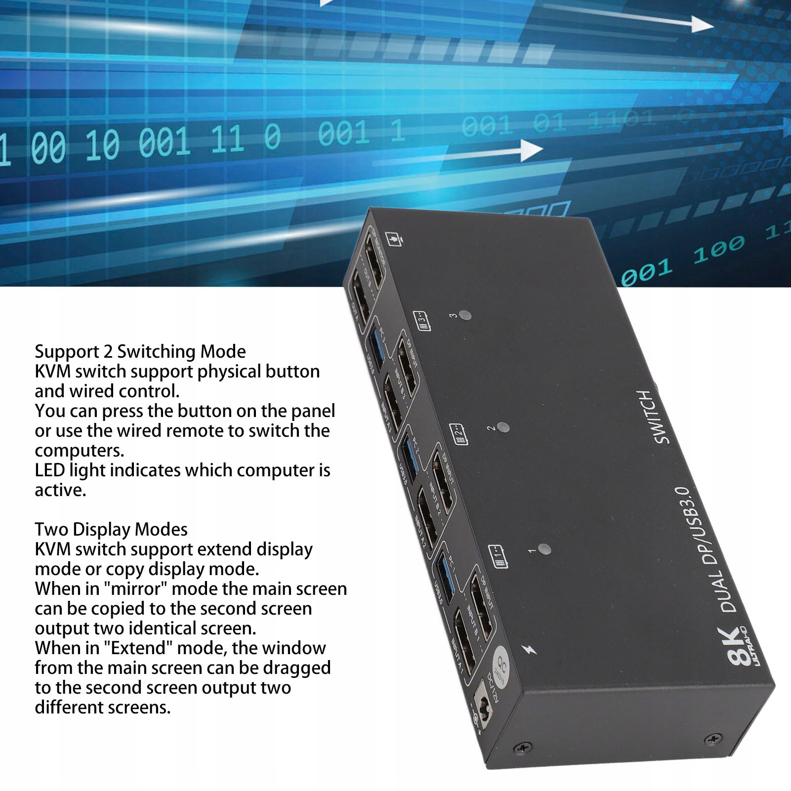 KVM Dual DP USB3.0 3 Входы переключателя 2 выводят копию и 4O