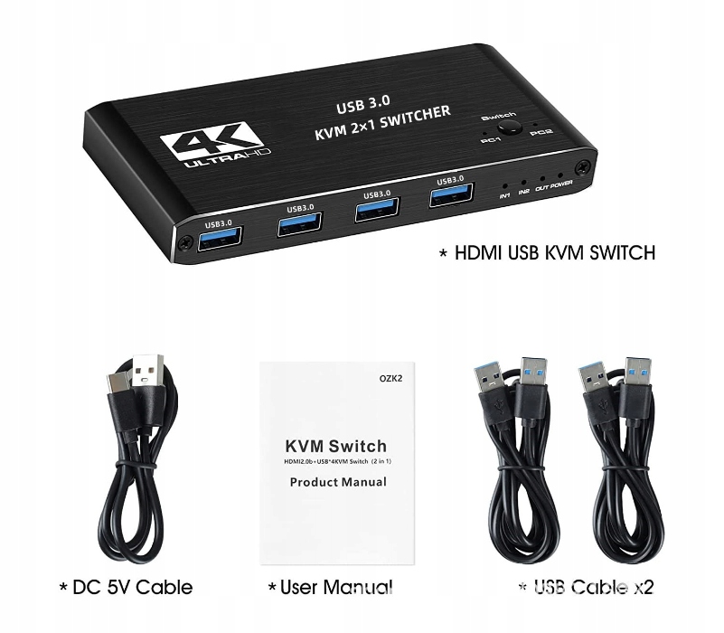 Оплачивая «Переключатель KVM 2x1 HDMI 2.0 USB 3.0 Переключатель 4K/60 Гц 4XUSB 2 Компьютеры» данное изделие из «KVM-переключатели» вы можете быть уверены, что после оформления заказа, доставки в Украину, вы получите именно то, что заказывали, в оговоренные сроки и европейского качества.