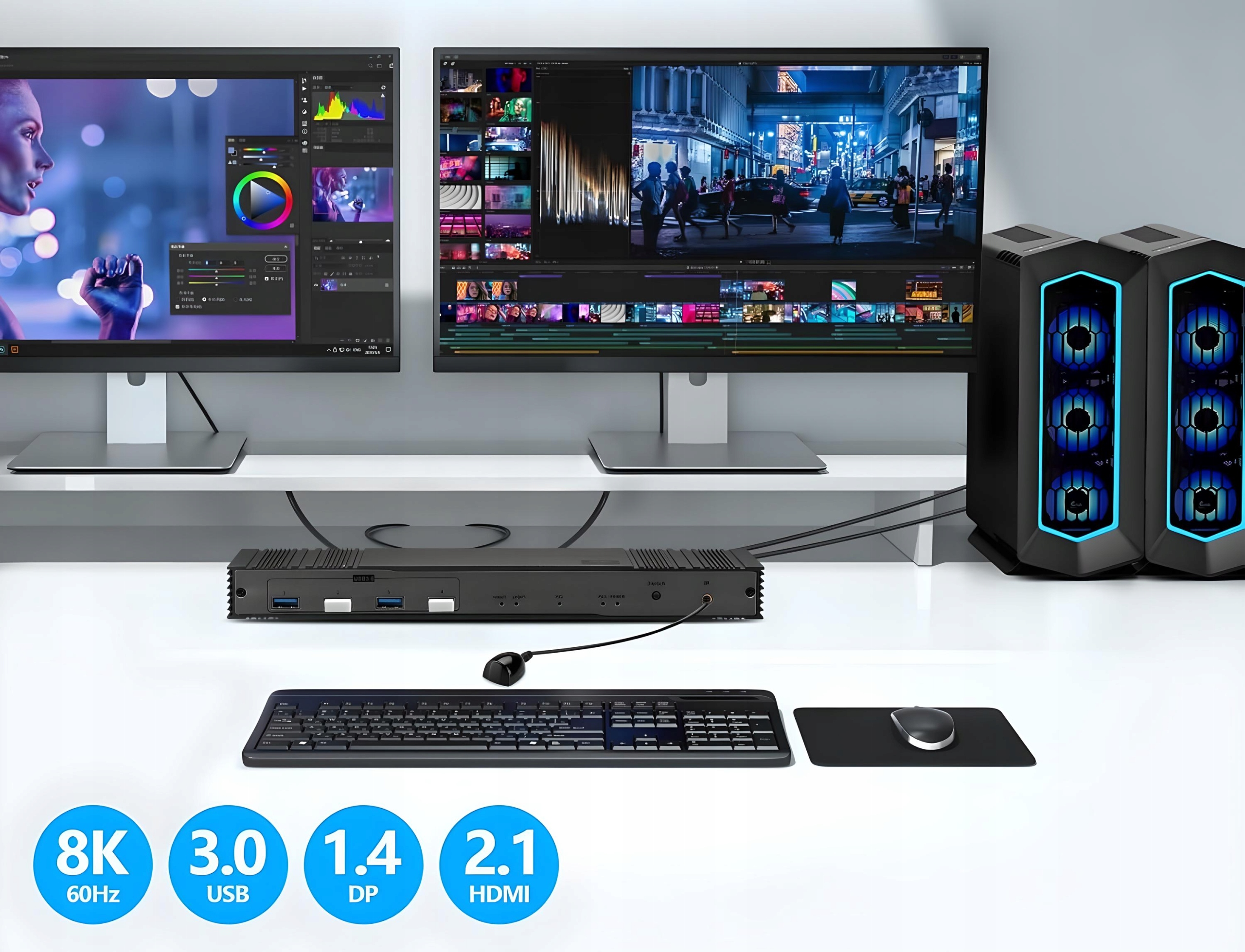 KVM Switch HDMI DP 2x2 KONSOLA PRZEŁĄCZNIK DISPLAYPORT 2 Monitory 4xUSB 3.0