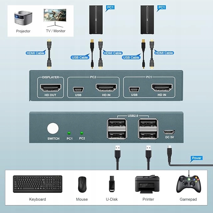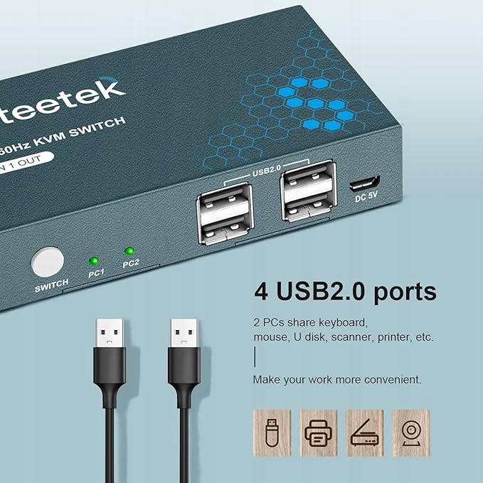 Кнопочный переключатель для KVM-переключателя Displayport Этот KVM-переключатель USB 3.0 переключается одной кнопкой на KVM-переключателе, что удобно и быстро. Примечание. Это устройство поддерживает только переключение кнопками, но не горячими клавишами.