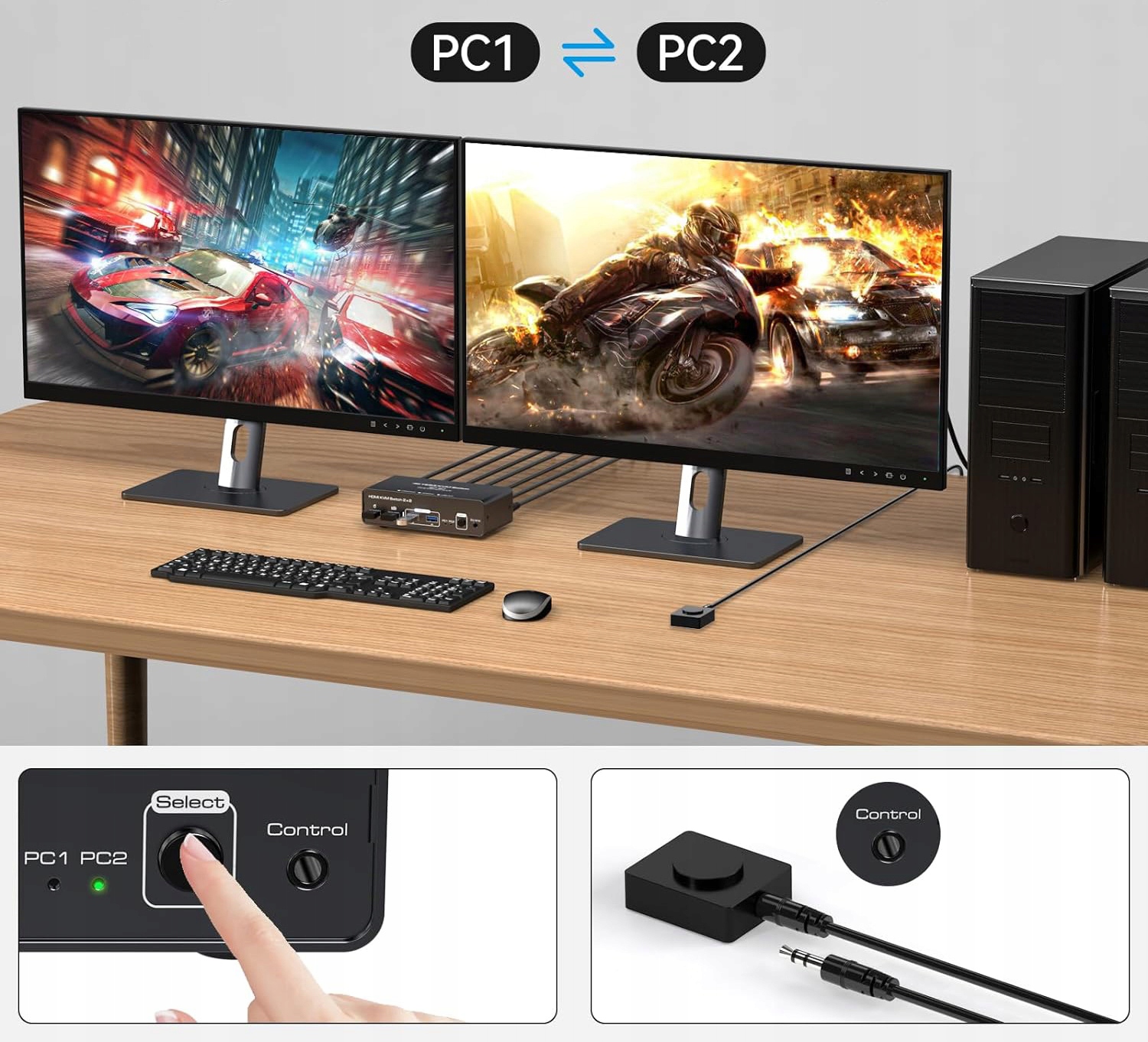 【Два режима переключения】 KVM 2 Мониторы 2 компьютеры предлагают два способа переключения источников: