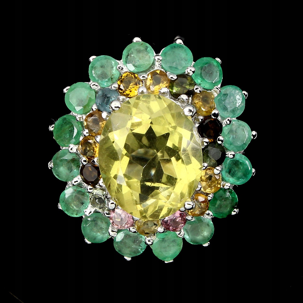 KWARC SZMARAGDY TURMALINY DUZY PIERSCIONEK