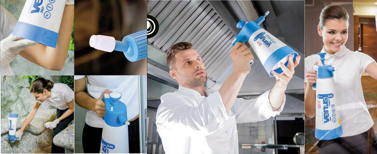 Распылитель VenusSuper 360 1L CleaningPro+ — это небольшой профессиональный распылитель высокого давления, предназначенный для мытья и уборки. Идеально подходит для автомоек и мастерских, медицинских учреждений и клининговых компаний. Опрыскиватели серии Cleaning Pro+ оснащены инновационной системой 360 STRESS FREE, позволяющей вносить жидкость независимо от расположения бака. Кроме того, силиконовая всасывающая трубка с заполненным фильтром позволяет применять независимо от уровня жидкости в распылителе. Благодаря этим решениям опрыскиватели очень удобны в использовании.