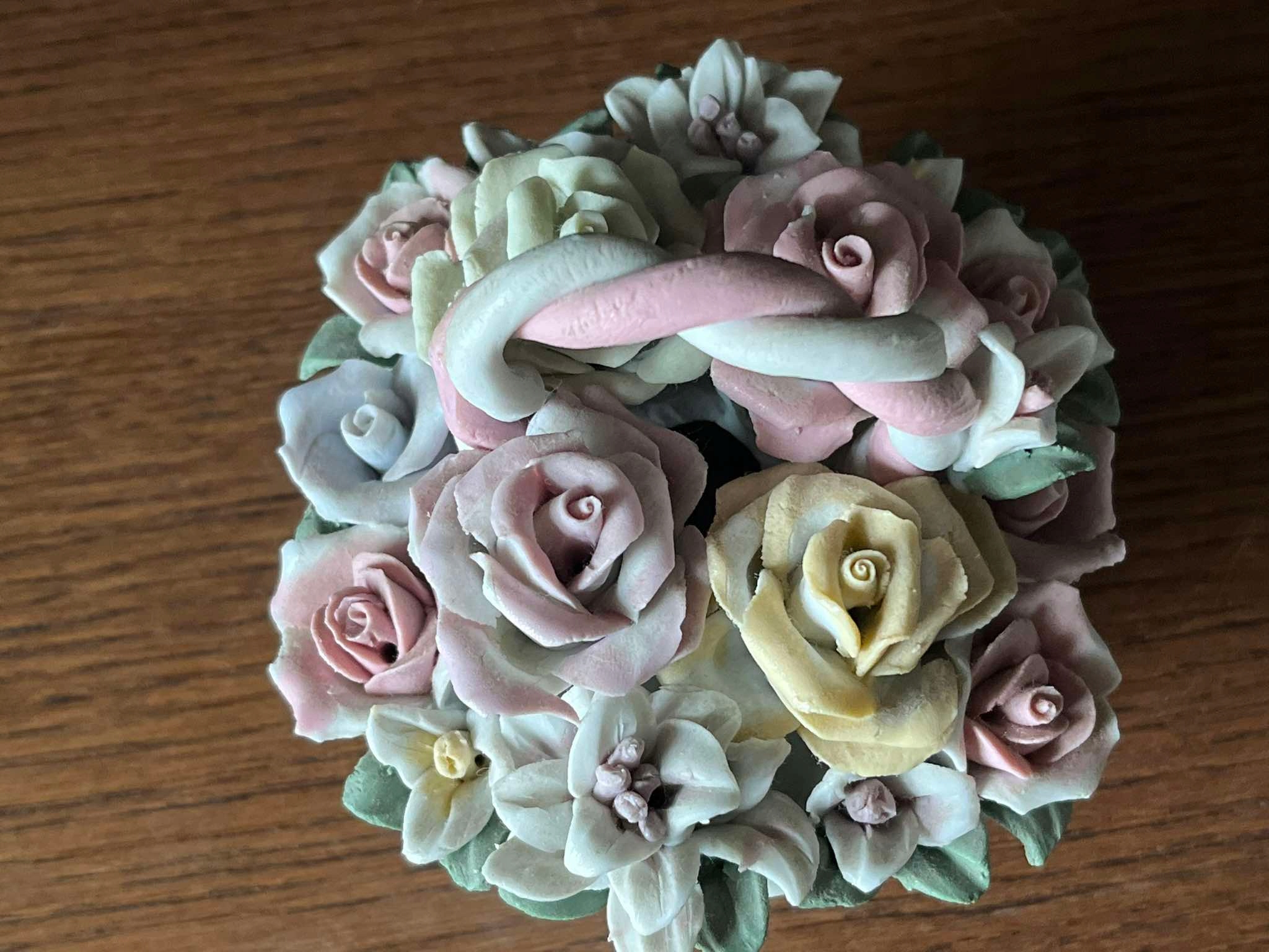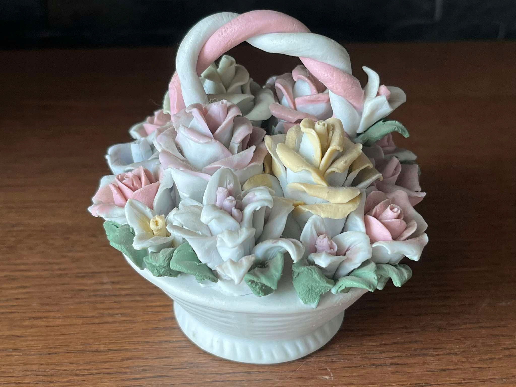 Kwiatki porcelanowe koszyk porcelana biskwitowa