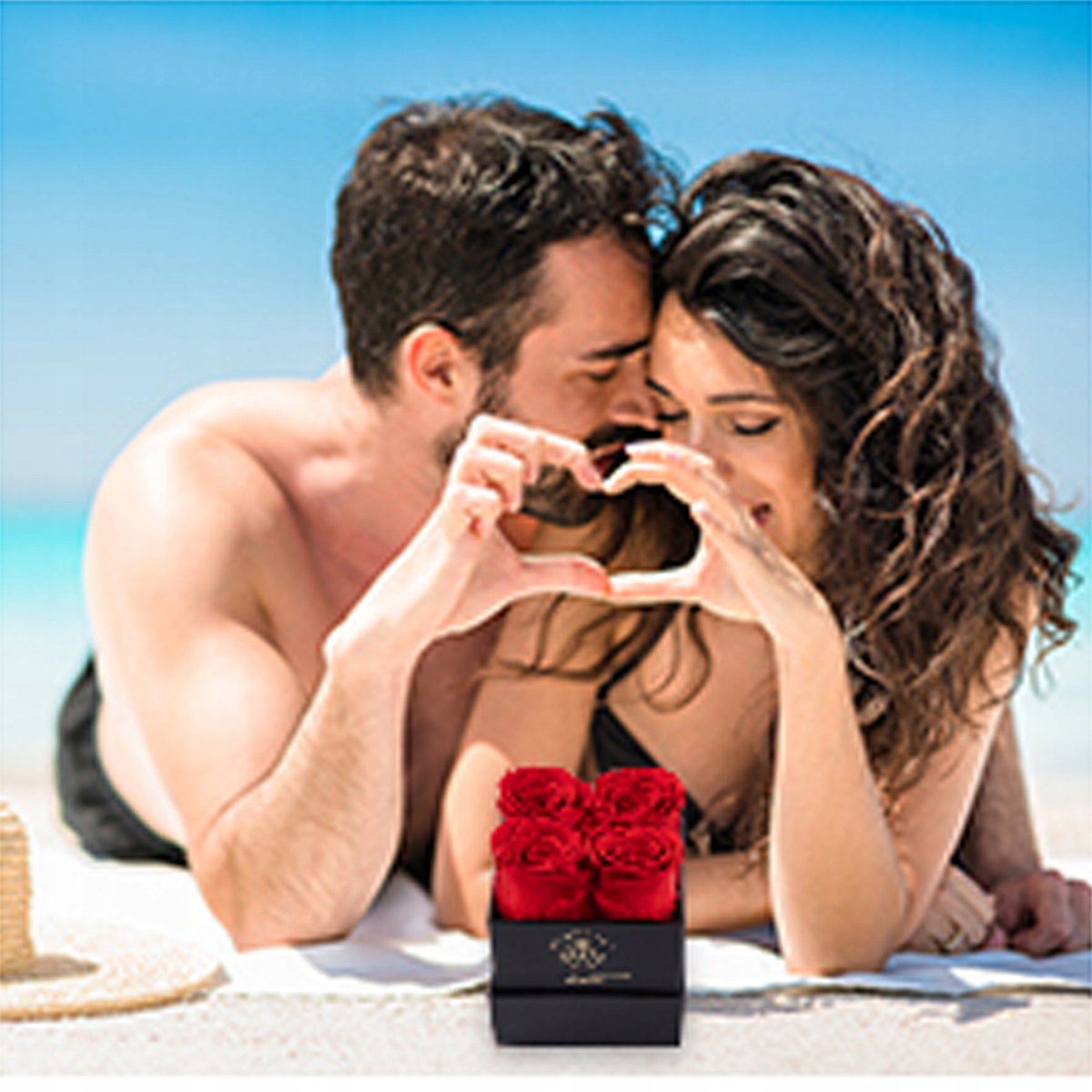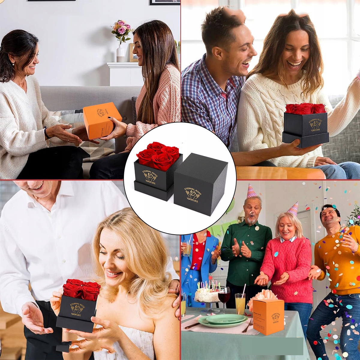 【Сохраненная роза】 Сохраненная роза является символом вечной любви, 4 настоящих красных розы в классической черной подарочной коробке. 100% ручной работы настоящие свежие цветы, обработанные уникальным методом технического обслуживания. Вечный цветок экспрессирует вечную любовь к любимому человеку.