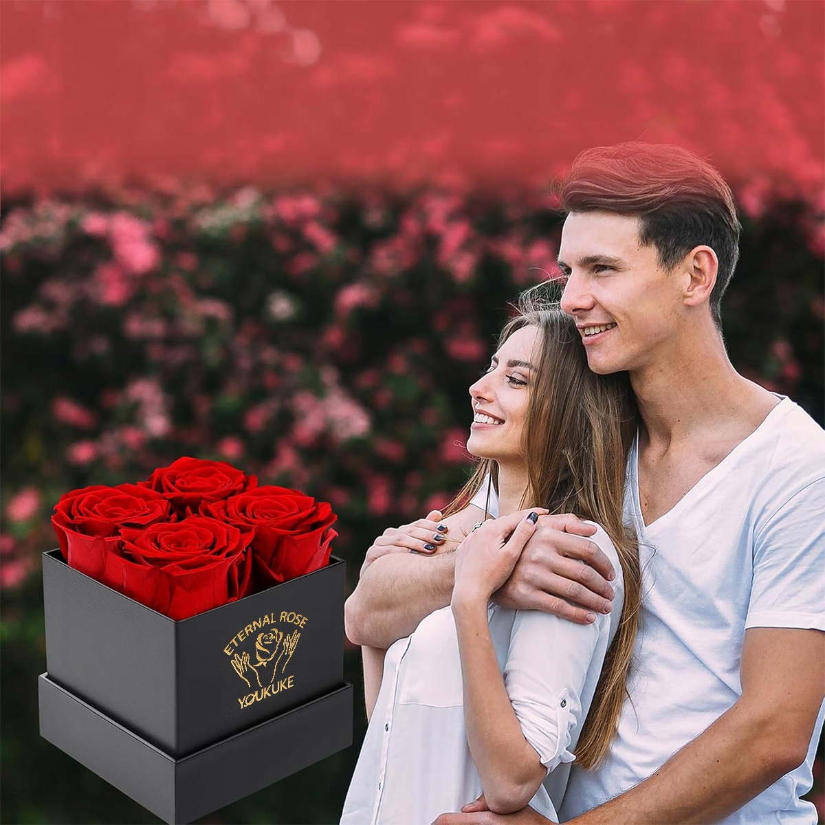 youkuke Rose Box, набор из 4 настоящих красных роз, бесконечно -роз, консервированная роза, вечная роза, подарки на день рождения для женщин, подарки для матери / девочки / жена / бабушка, день рождения, День святого Валентина, вечный цветок