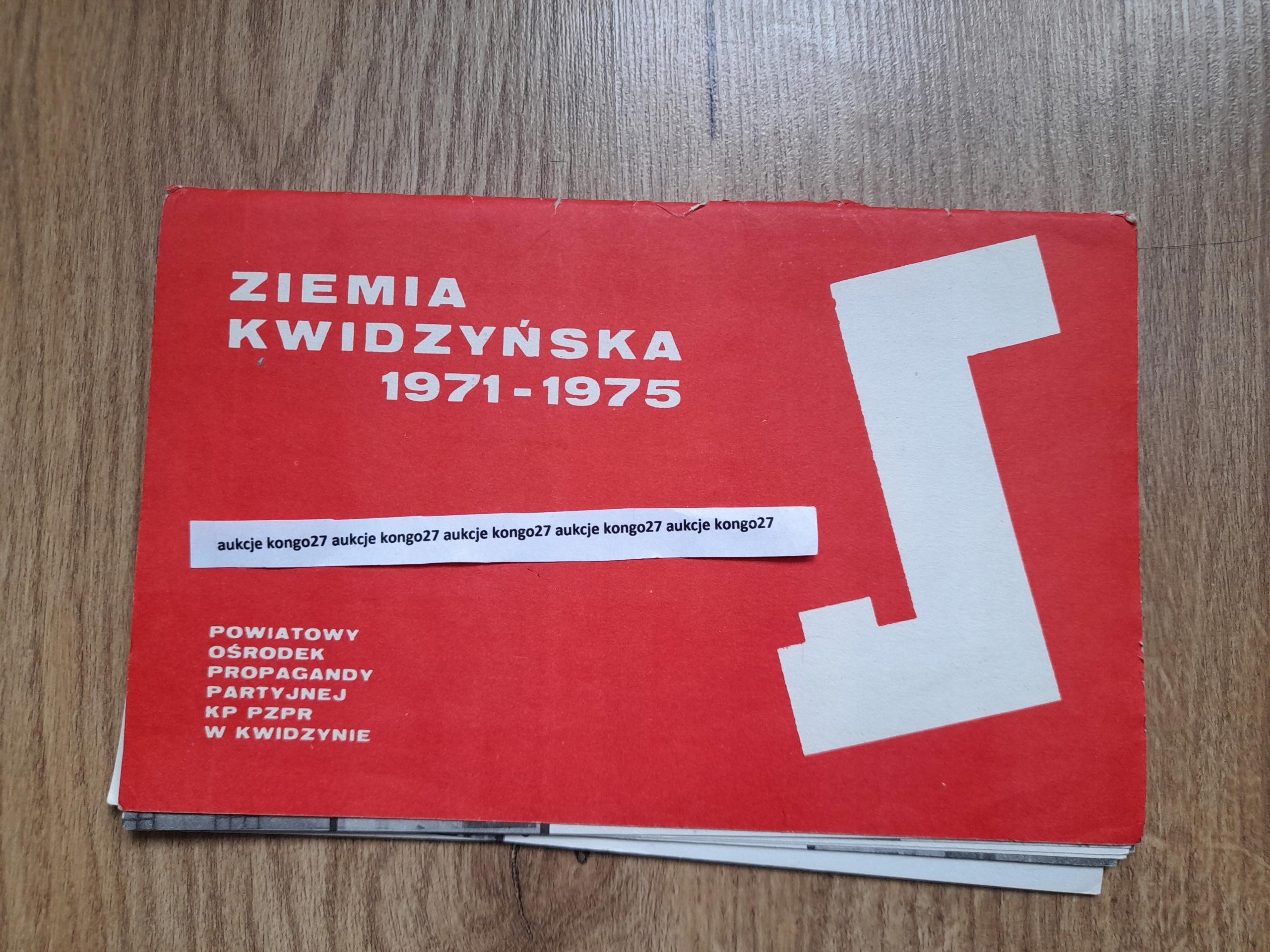 Издательство «Пропаганда», Уездный центр партийной пропаганды КП ПОРП в Квидзыне. Всего 11 фотографий, 8 разных, 3 повторяющихся, размеры 23 см на 14,4 см. На фотографиях показаны постройки и инвестиции Квидзынского района 1971-1975 годов. Темы: инвестиции, муниципальное и жилищное управление, спорт, туризм и отдых, сельское хозяйство, образование и воспитание, промышленность, здравоохранение, культура. Интересное описание на обратной стороне фотографий и на обратной стороне сумки.