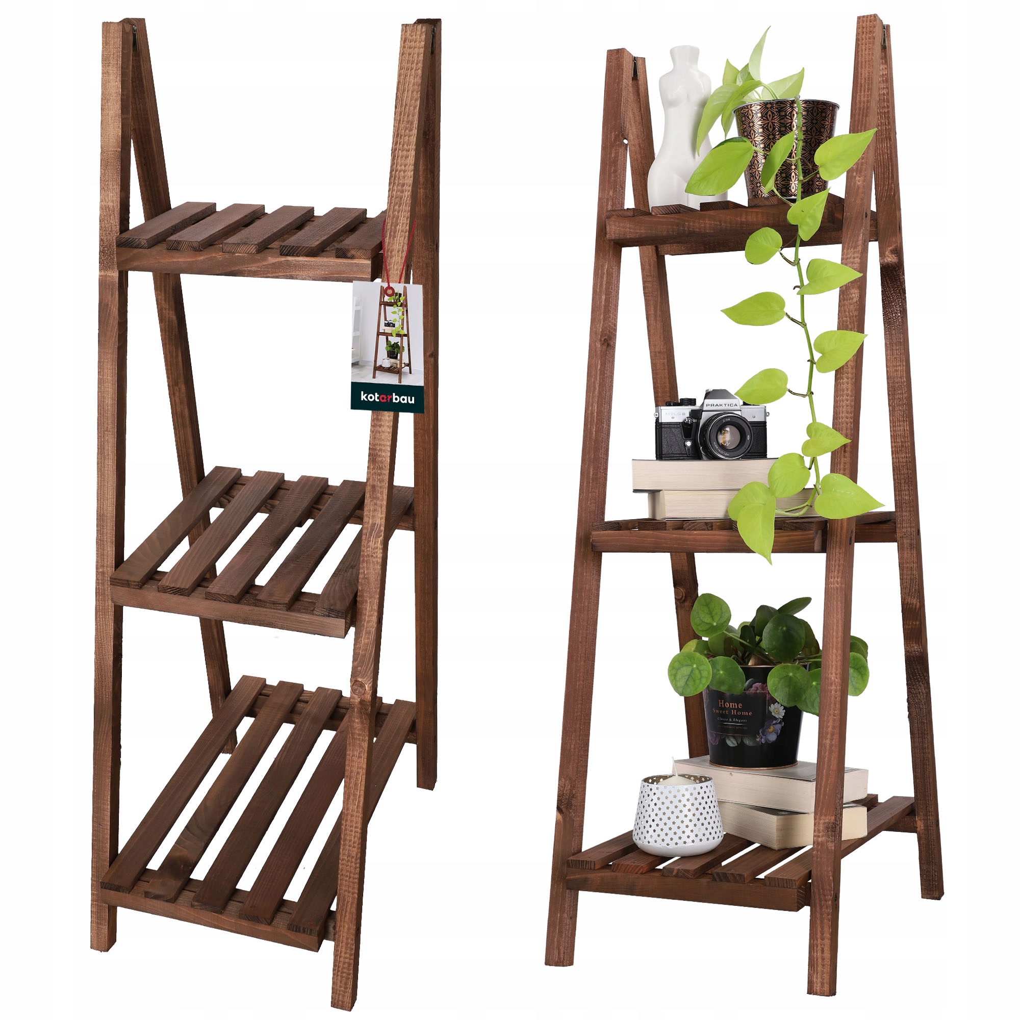 Деревянная цветочная лестница подходит для украшения дома, сада и балкона. Это польский продукт, поэтому вы можете быть уверены, что он поступает из безопасного источника. Лестница в форме клумба выглядит элегантно, и это связано с коричневой структурой.
