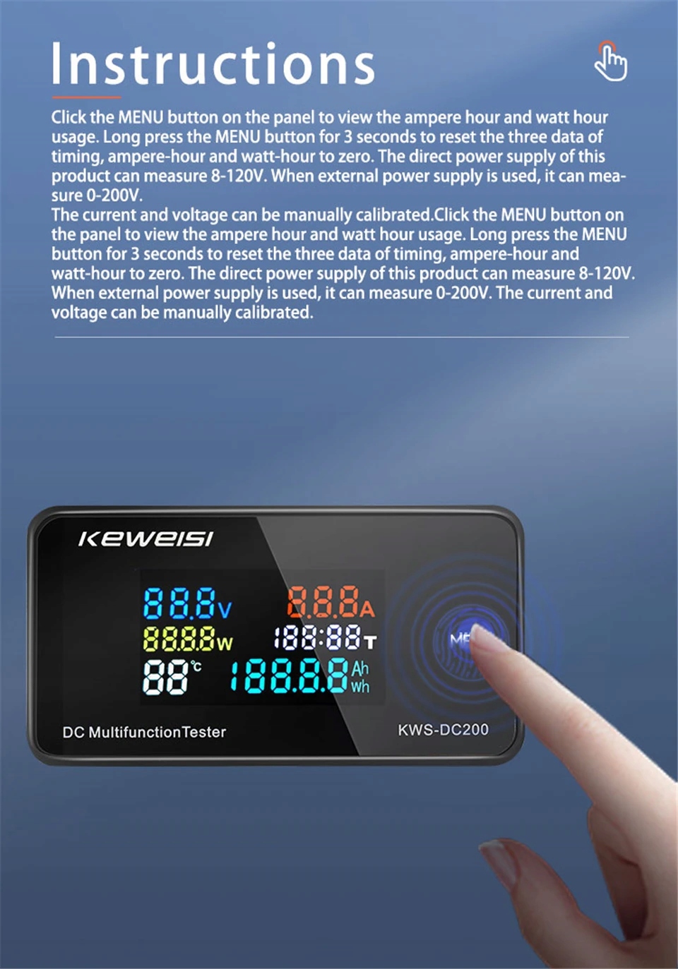 4. Прямой источник питания для этого продукта может измерить 8-120 В, а внешний источник питания может измерить 0-220 против. 0-2000 Мощность: 0-2000 Вт