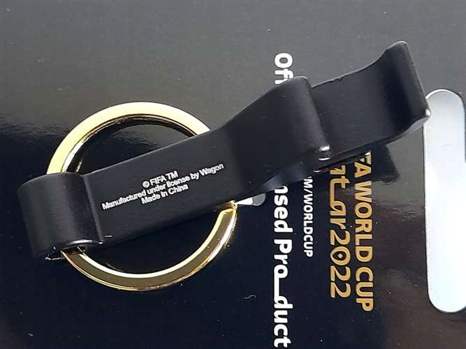 Описание: кольцо сувенирного ключа, сделанное из металла и пластика с раскрашенным трофеем мирового чемпионата КАТАР 2022 и бутылочка в одном. На другой странице есть официальная подпись производителя. Ключевое кольцо помещено в специальную упаковку с голограммой FIFA. Это официальный сувенир чемпионата мира по футболу в Катар 2022.