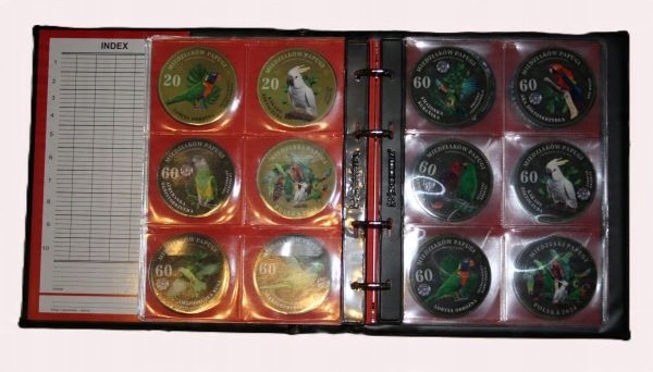 - Страниц - 35 - на 35 мелких монет, в альбоме поместится 10 страниц с разделителями (350 монет). Размеры окна 27 мм Х 27 мм.