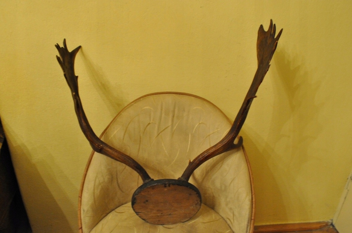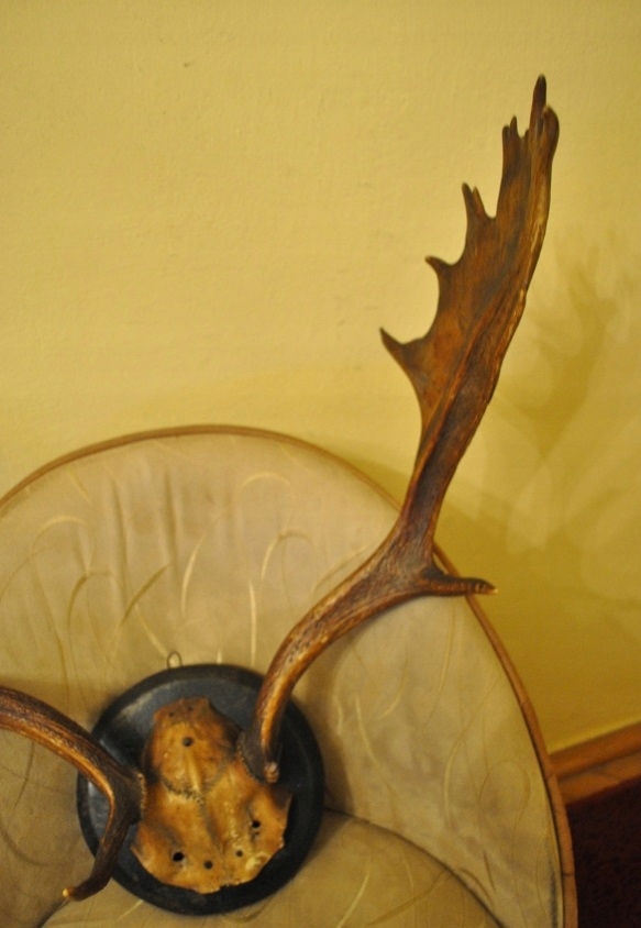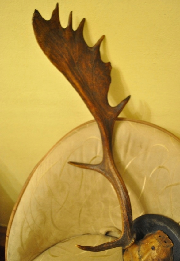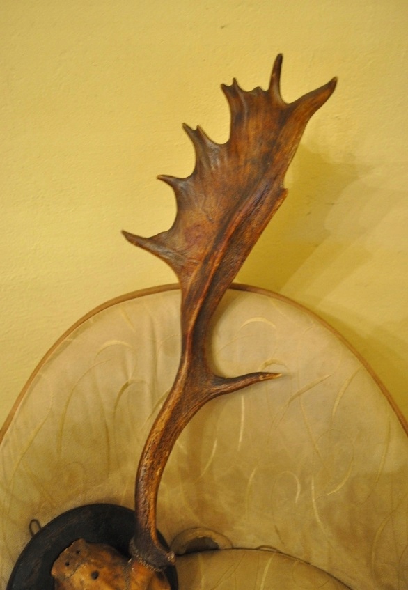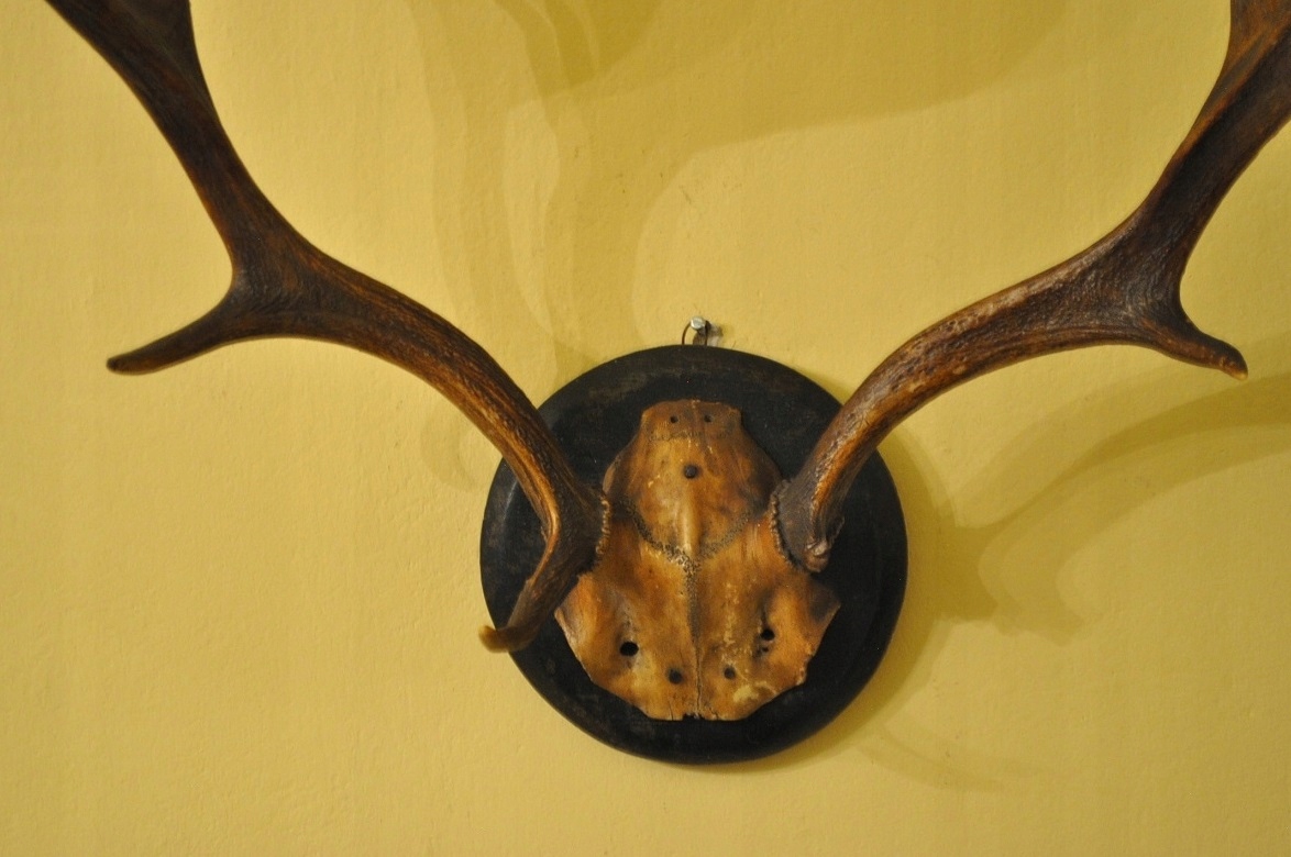 Один из нижних корней левого рога (у основания) отломлен (естественным путем).