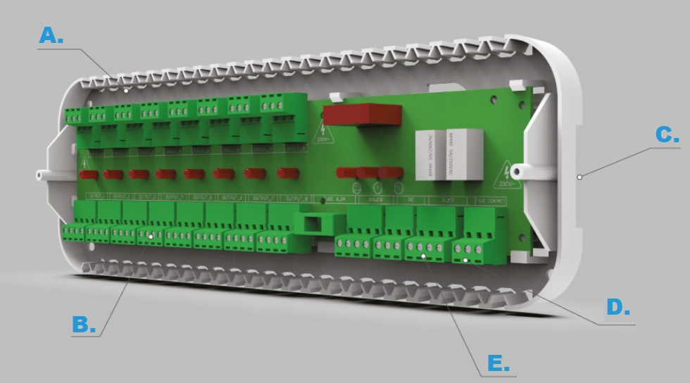 проволочная полоса для пола l-5S b> Tech. Полоса l-5S является расширенным контроллером для регулировки термостатических цилиндров, которые находятся на дистрибьюторе . В случае полосы L-5S должны быть установлены все другие дополнительные устройства и с кабельной полосой . Кабель должен, среди прочего, привести к проволоке регуляторов комнаты .