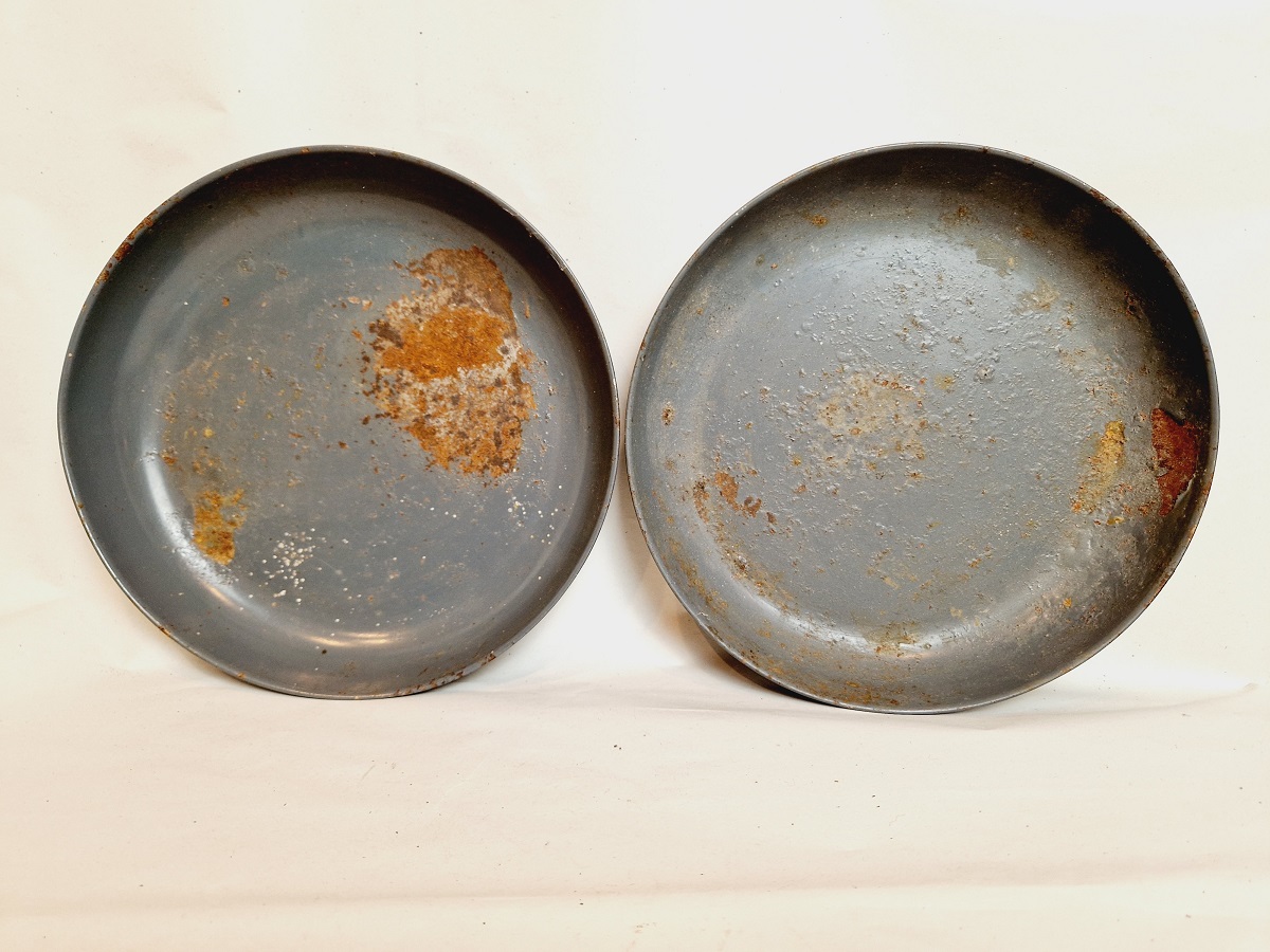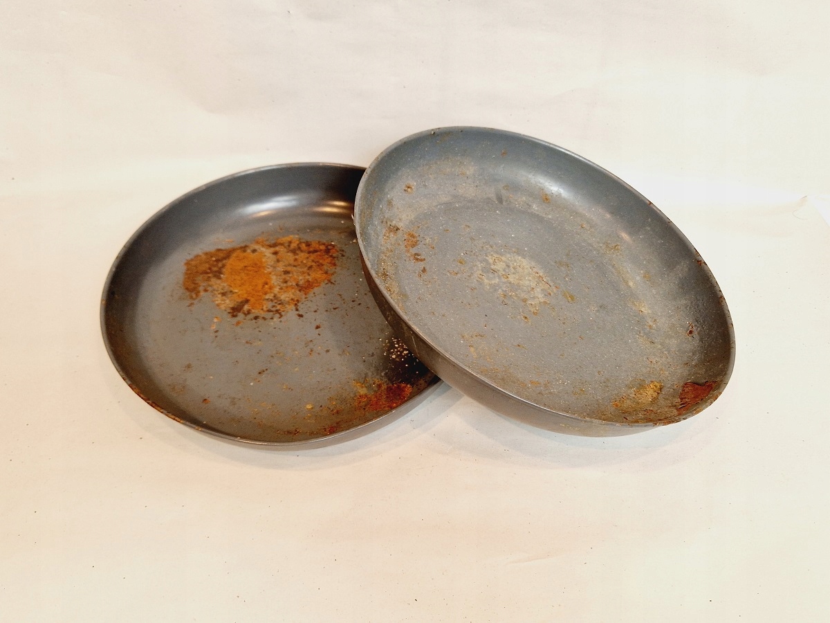 l 70 / 80-ті 20 століття / Набір з 2 предметів 22,2 см - ЗАЛІЗНА Сковорода НА ВАГИ "10кг" /9218