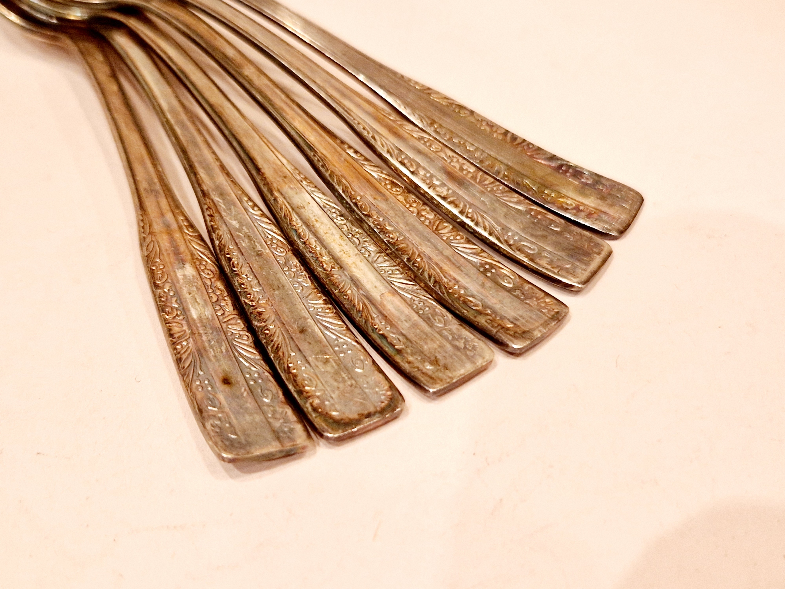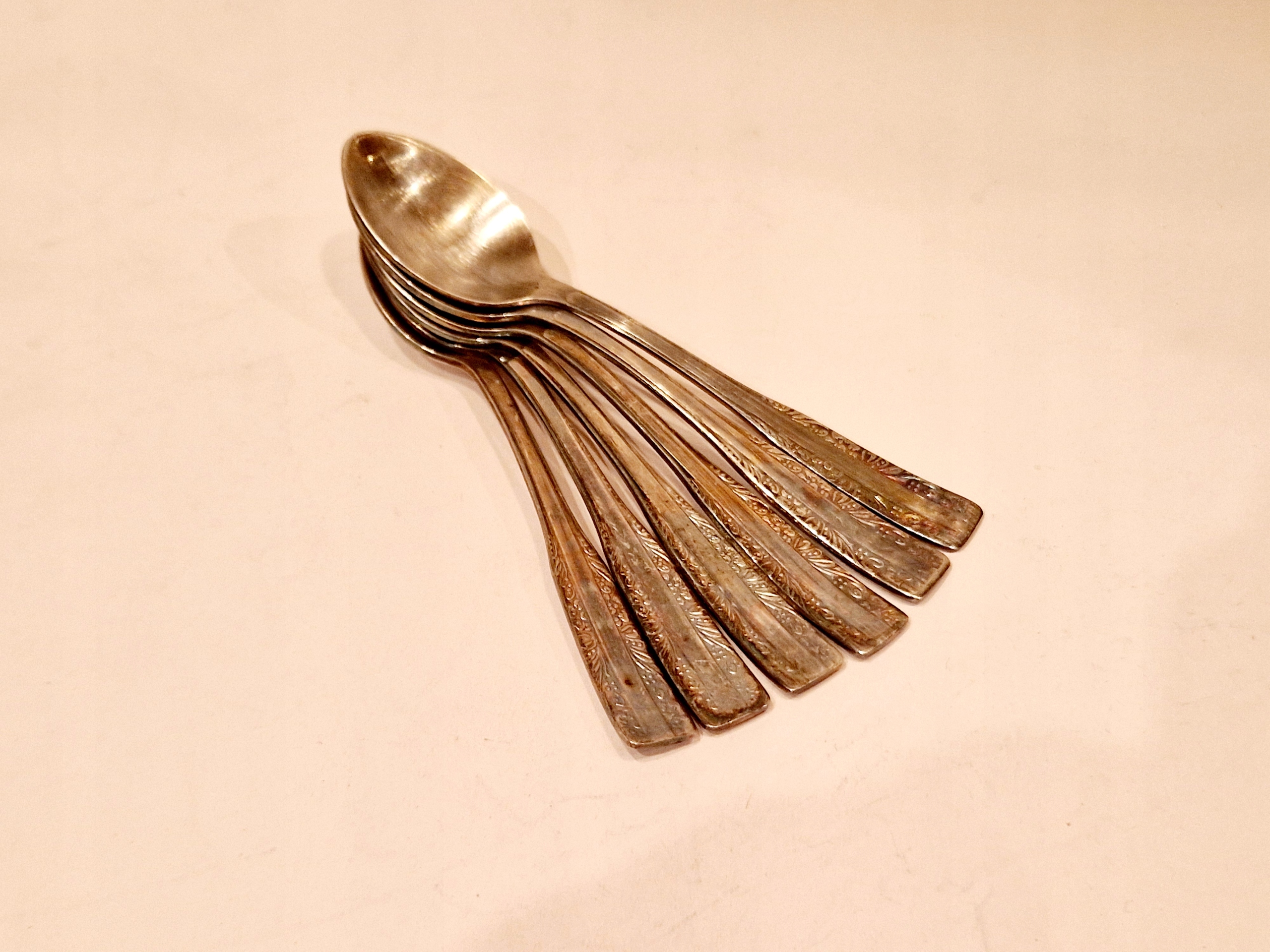 л 70/80-е 20 век / 6 шт. - HEFRA MET-60 КОФЕЙНЫЕ ЛОЖКИ ВОСТОЧНЫЙ УЗОР /2473