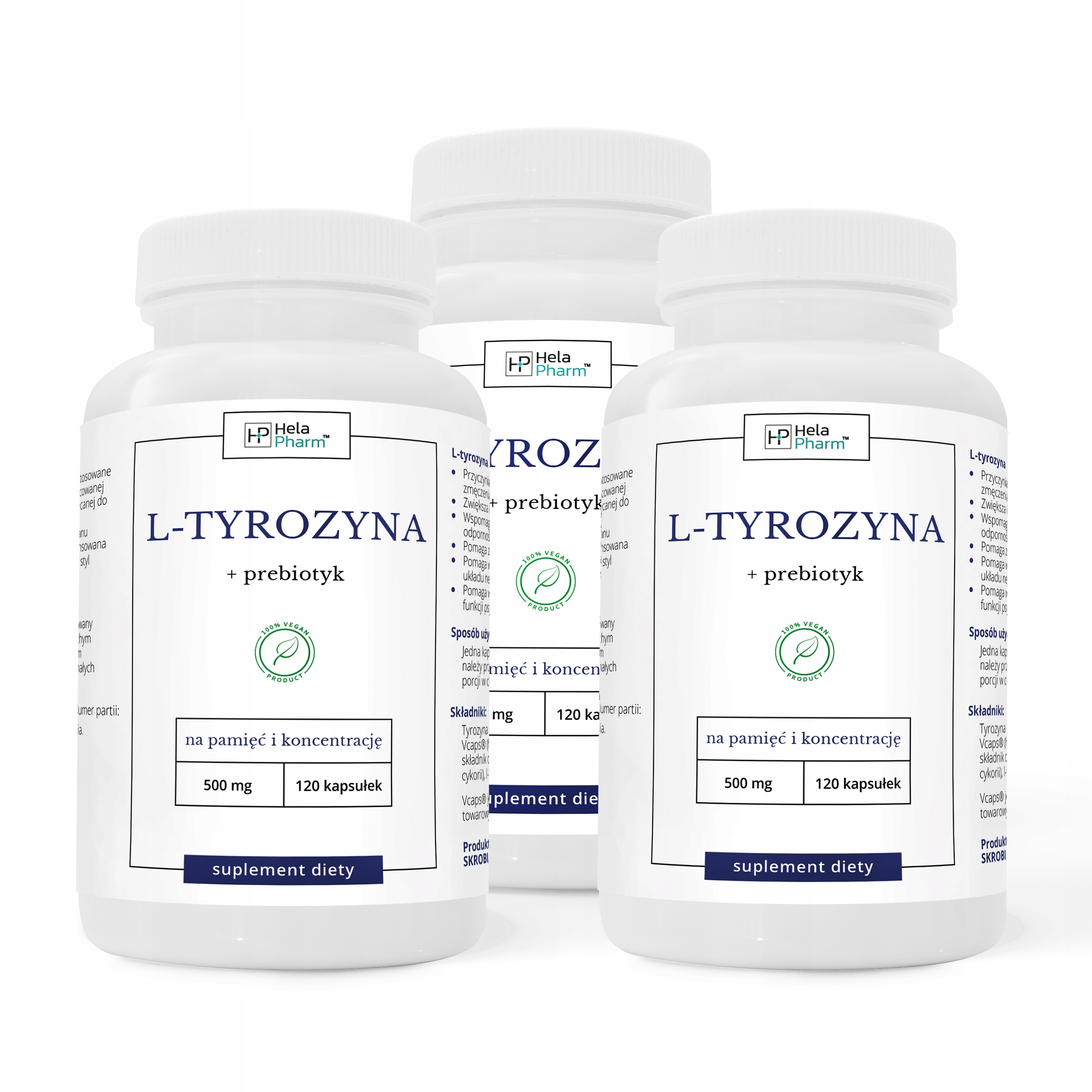 L-ТИРОЗИН Тирозин 500 мг + пребиотик 3 х 120 капсул от Hela Pharm® - поддерживает память и концентрацию: