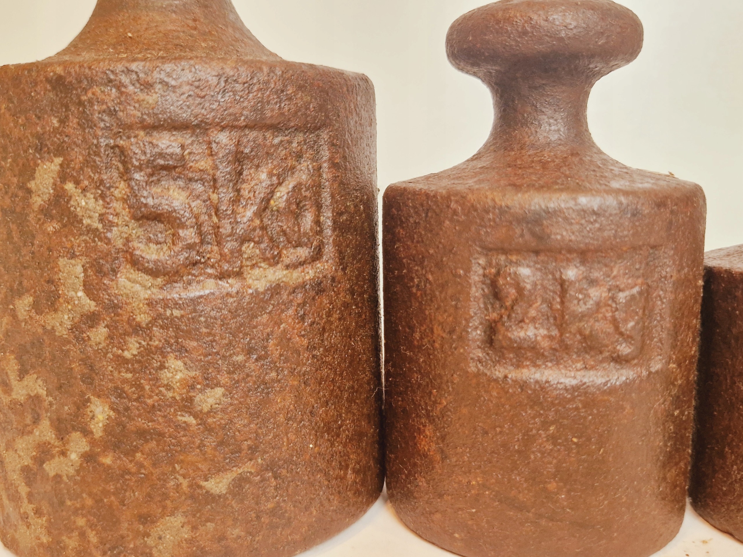 l. 40-te XX w / 50dkg - 5kg (5 szt.) STARE ŻELIWNE ODWAŻNIKI HANDLOWE /653