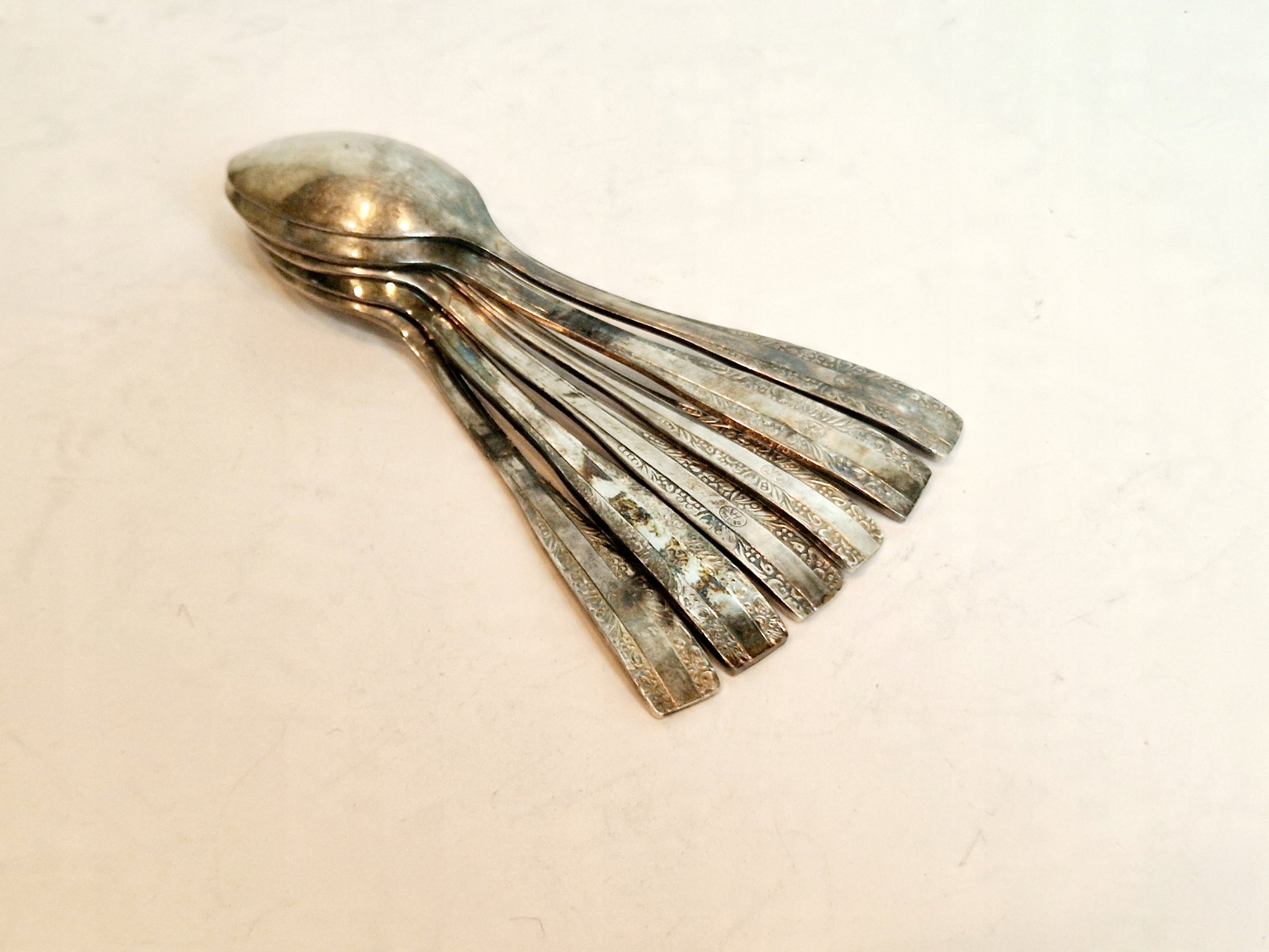 чайные ложки не были очищены - они покрыты оригинальной старой патиной.