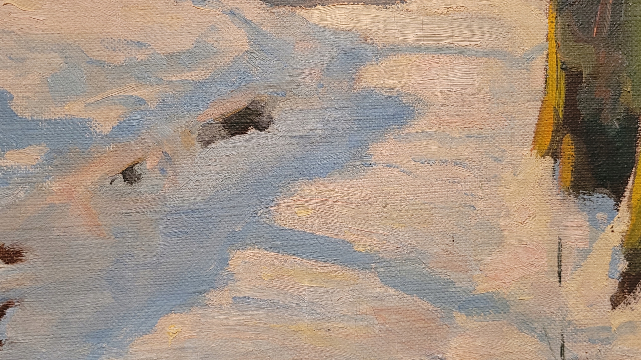 Предмет продажи - красивая, старинная картина маслом "ЗИМНИЙ ПЕЙЗАЖ".