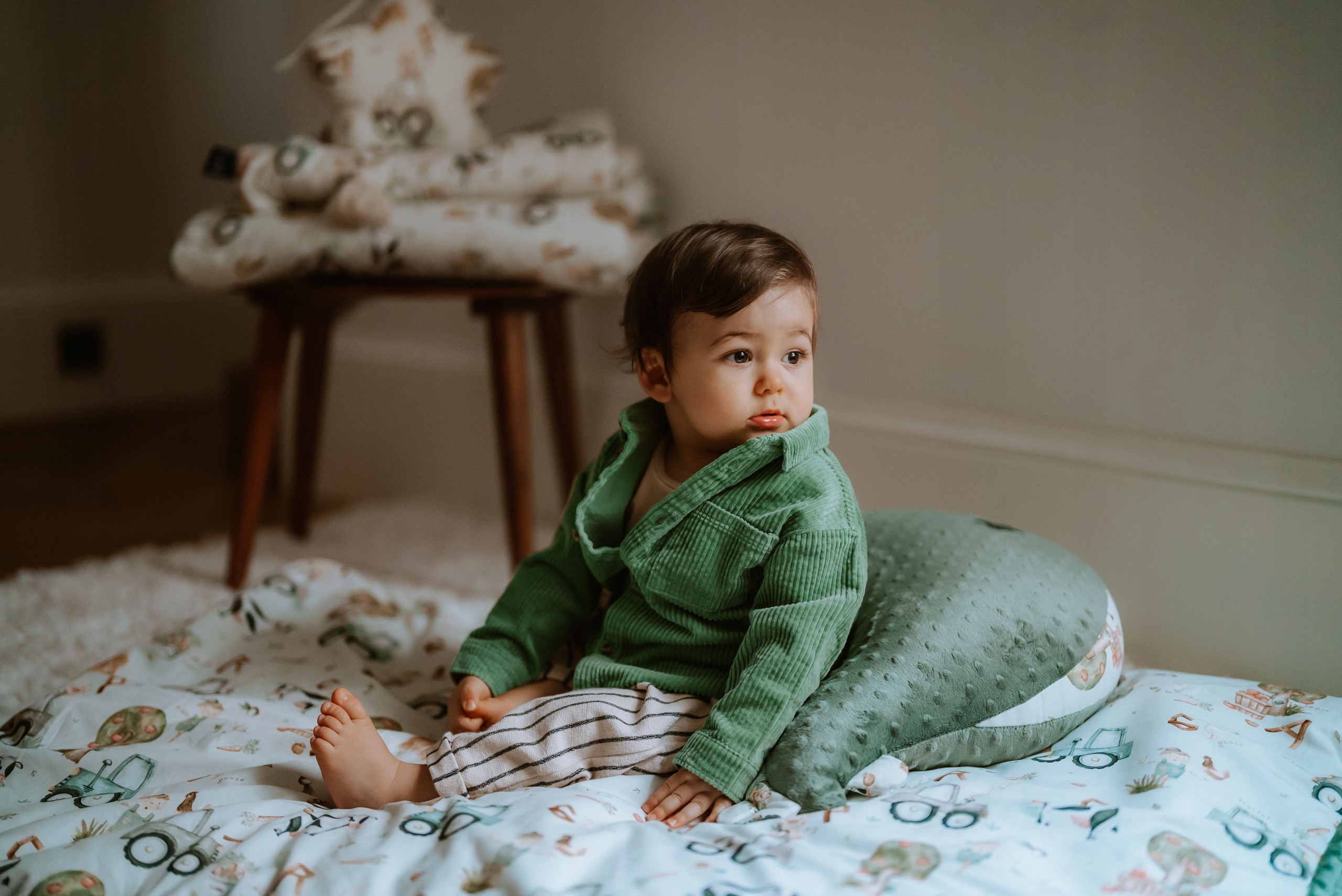 Все изготовлено из совершенно новой ткани - чрезвычайно мягкого бархата, уникальная текстура которого делает его еще более нежным и приятным на ощупь, а потому абсолютно дружелюбным к чувствительной коже ребенка. Помимо приятных тактильных ощущений, передовые технологии, используемые при производстве этого трикотажа, делают бархат очень прочным и воздушным. Основа — плотное переплетение чрезвычайно тонких полиэфирных волокон — даже тоньше шелка.