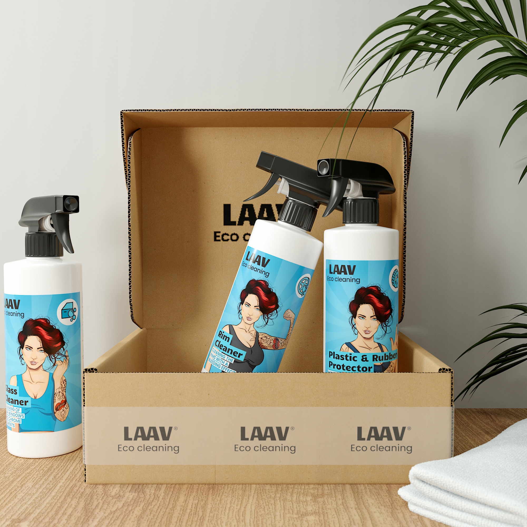 С LAAV® GLASS CLEANER очистка и уход за стеклом и хромированными элементами в вашем автомобиле превращается в настоящее удовольствие. Вы можете использовать его на глянцевых окнах, зеркалах, фарах и люках на крыше. Эффективно, как катана, справится с жиром и въевшейся грязью, оставив приятный запах нового автомобиля.