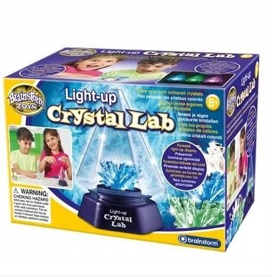Проводите собственные химические эксперименты и выращивайте разноцветные кристаллы. Поместите готовый кристалл в подсвеченный дисплей в форме пирамиды со светодиодной основой, меняющей цвет. Осветите свой кристалл семью разными цветами: красным, зеленым, синим, желтым, голубым, розовым и белым. Он превращается в потрясающий ночник, которым можно поделиться с друзьями. В комплект входят химикаты для изготовления кристаллов, пирамидальный дисплей с подсветкой и светодиодным основанием, мерный стакан с крышкой, ложка и восьмиугольный контейнер. Не подходит для детей младше 8 лет, требуется присмотр взрослых. Питание от 3 батареек ААА (в комплект не входят).