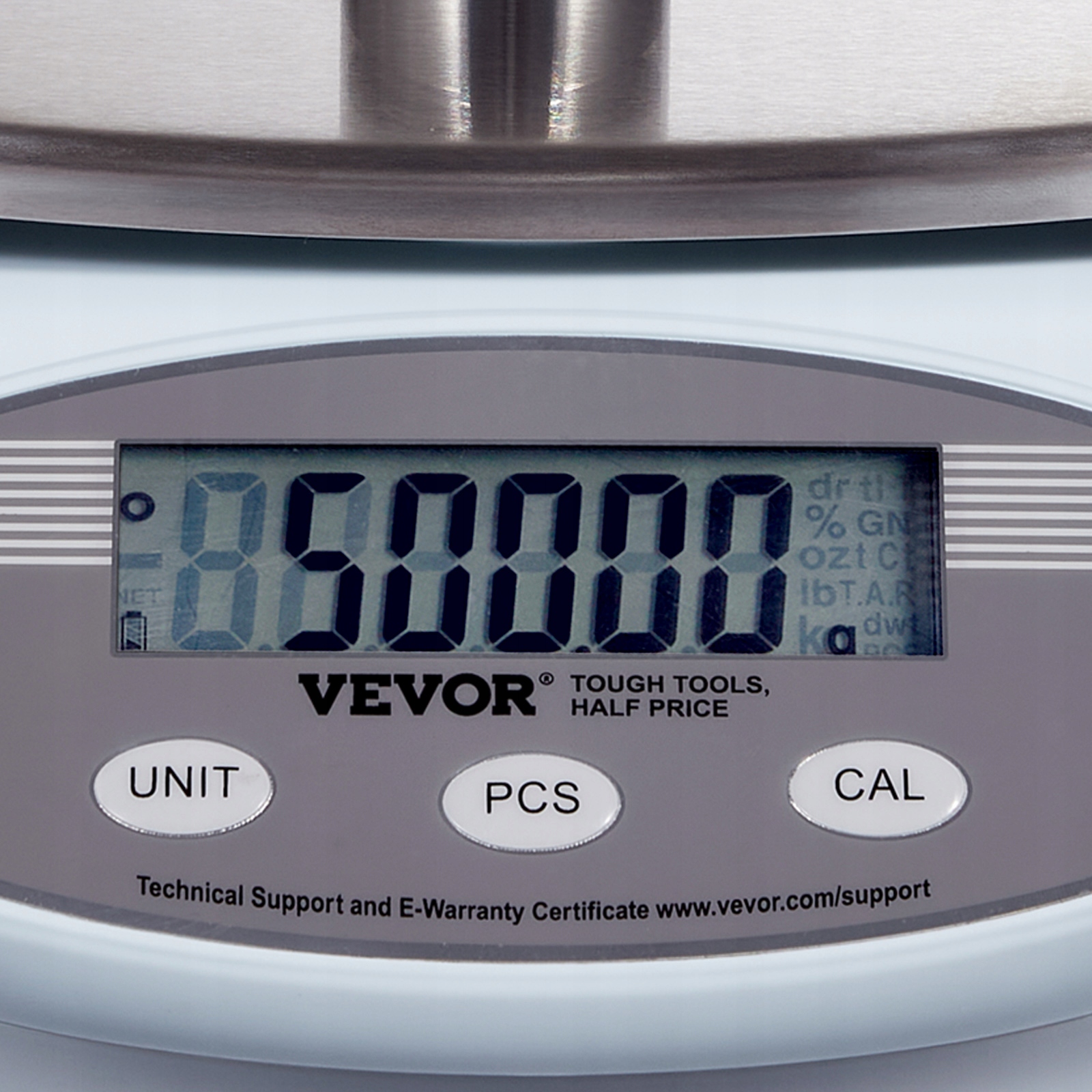 VEVOR Лабораторная шкала оснащена высокой точностью и имеет калибровочный вес 500 г, что обеспечивает быстрое и точное взвешивание. Лоток сводит к минимуму питания, источник питания, который отключается и контролируется напрямую. Благодаря вариантам AC и DC и 13 преобразованию единиц, они широко понимаются в лабораториях, определениях, сельском хозяйстве, ювелирных магазинах, школах и соответствующих учреждениях. Используйте