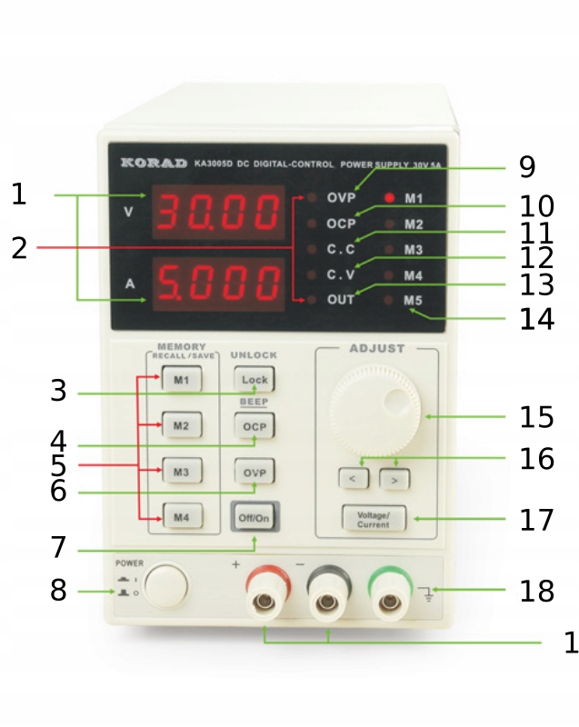 Лабораторний блок живлення KORAD KA3005P 30V5A. 5x пам'ять + USB-ПК