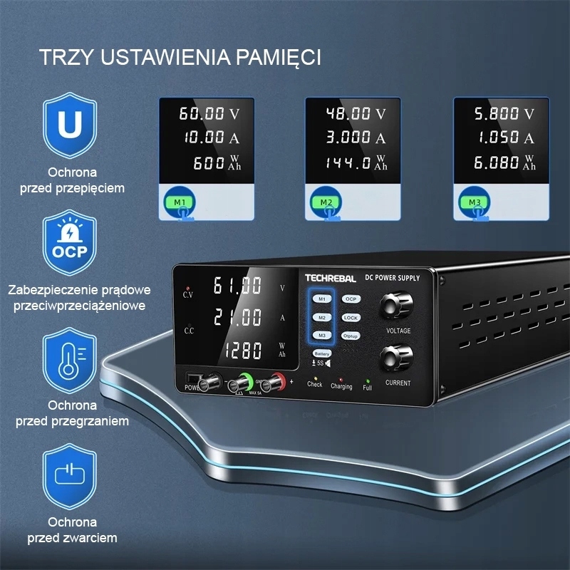 Регулируемая лабораторная энергоснабжение TechRebal R-SPS6010C 10A Функция зарядки
