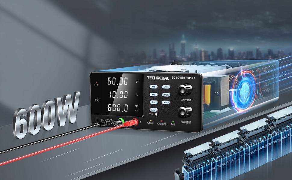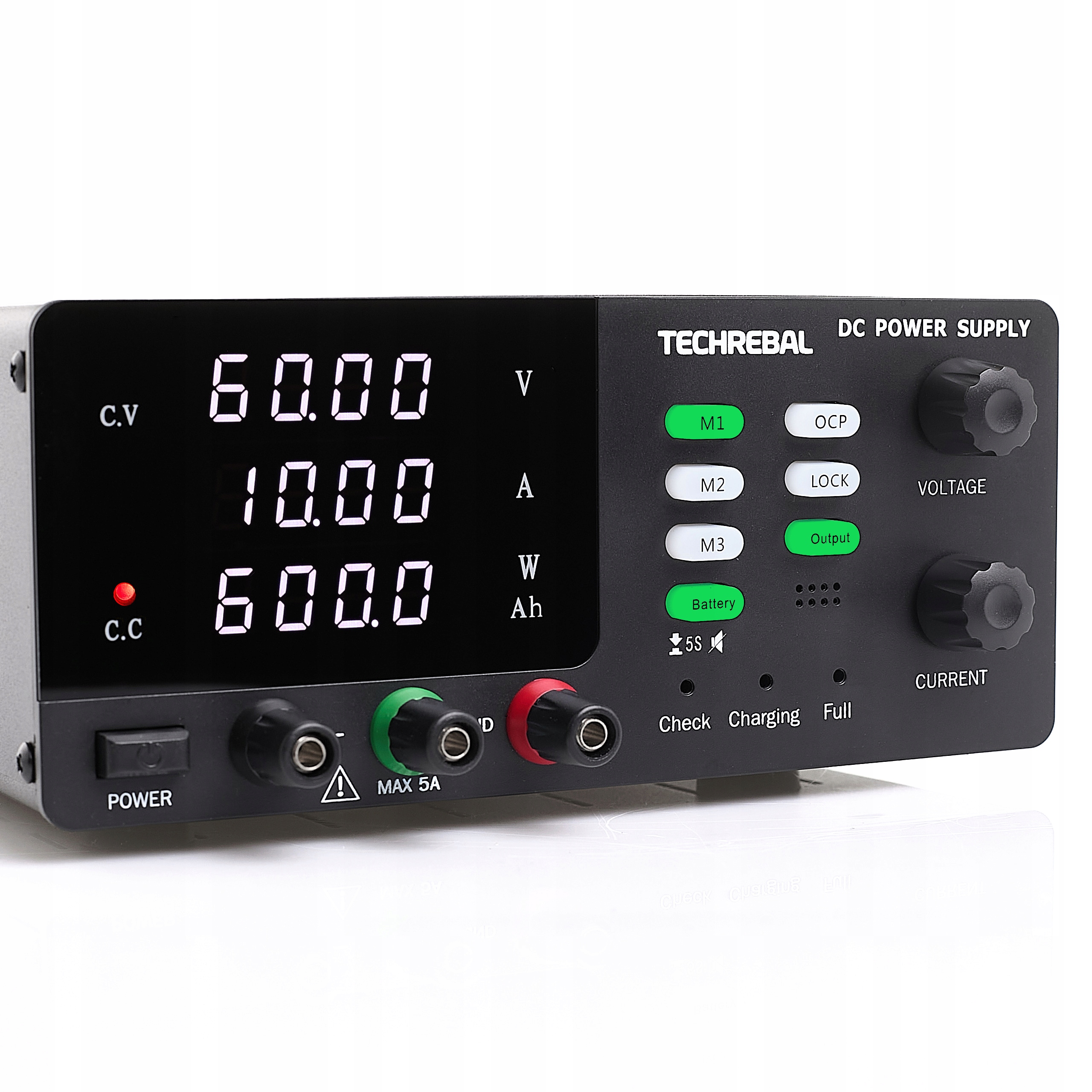 Techrebal R-SPS6010C — стабилизированный лабораторный источник питания с плавной регулировкой напряжения в диапазоне от 0 до 30 В и тока в диапазоне от 0 до 10 А. Его основными преимуществами являются высокая точность , возможность зарядки аккумулятора и четкий ЖК-дисплей. Блок питания охлаждается тихим вентилятором с регулируемой температурой.