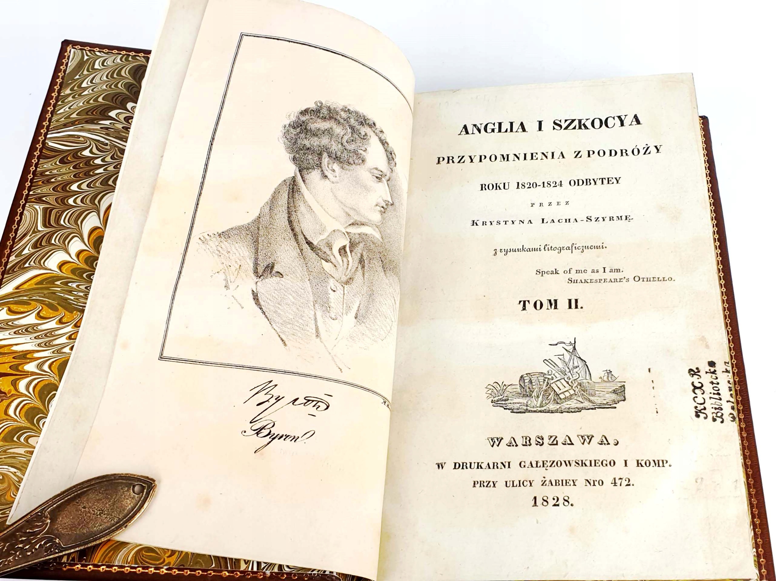 Крыстин Лах Ширма (род. 17 декабря 1790 в Войнаси, умерла 21 апреля 1866 в Девонпорте) — польский философ, писатель и публицист, переводчик, политический деятель. б> Его трехтомный труд «Англия и Шотландия». Воспоминания из путешествия... (Варшава, 1828) приобрели большую популярность и дали ему рядовое членство Варшавского общества друзей наук. Редкий набор. Иллюстрации - литографии на отдельных досках, гравюры в тексте. ТВЕРДЫЙ ПЕРЕПЕЧАТОК, ПОЛНАЯ КОЖА, СОВРЕМЕННЫЙ. ОБЛОЖКИ Окружены слепой рельефной каймой, плоский корешок с эффектным тиснением и позолотой. НА ЛЕНДАХ ОКРАШЕННАЯ МАРМОРИЗОВАННАЯ БУМАГА, ВСЕ ОБРЕЗКИ КАРТ ПОЗОЛОЧЕНЫ. ИНТЕРЬЕР КРЫШЕК РЕШЕН ИНТЕНСИВНЫМИ ЗОЛОТЫМИ УЗОРАМИ.