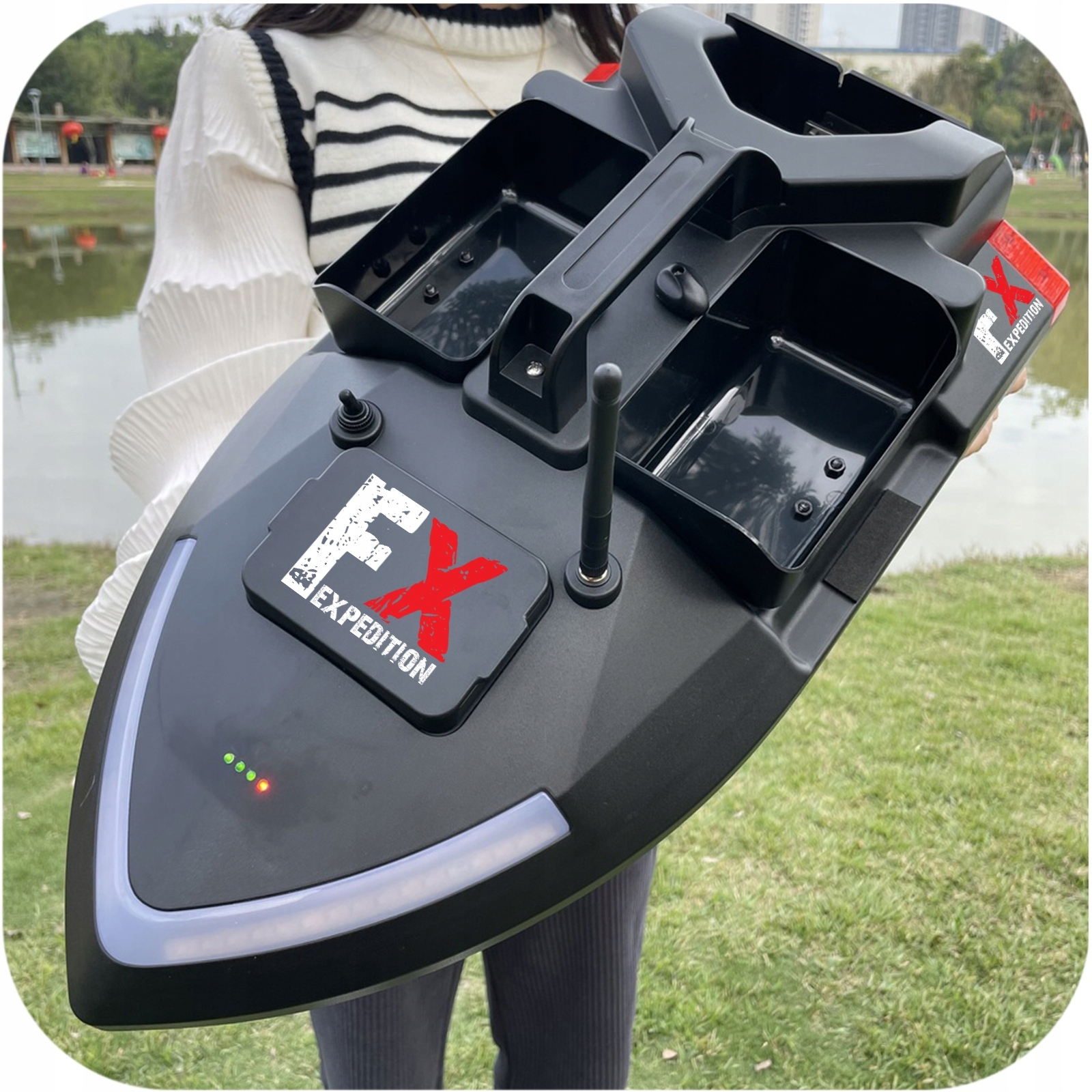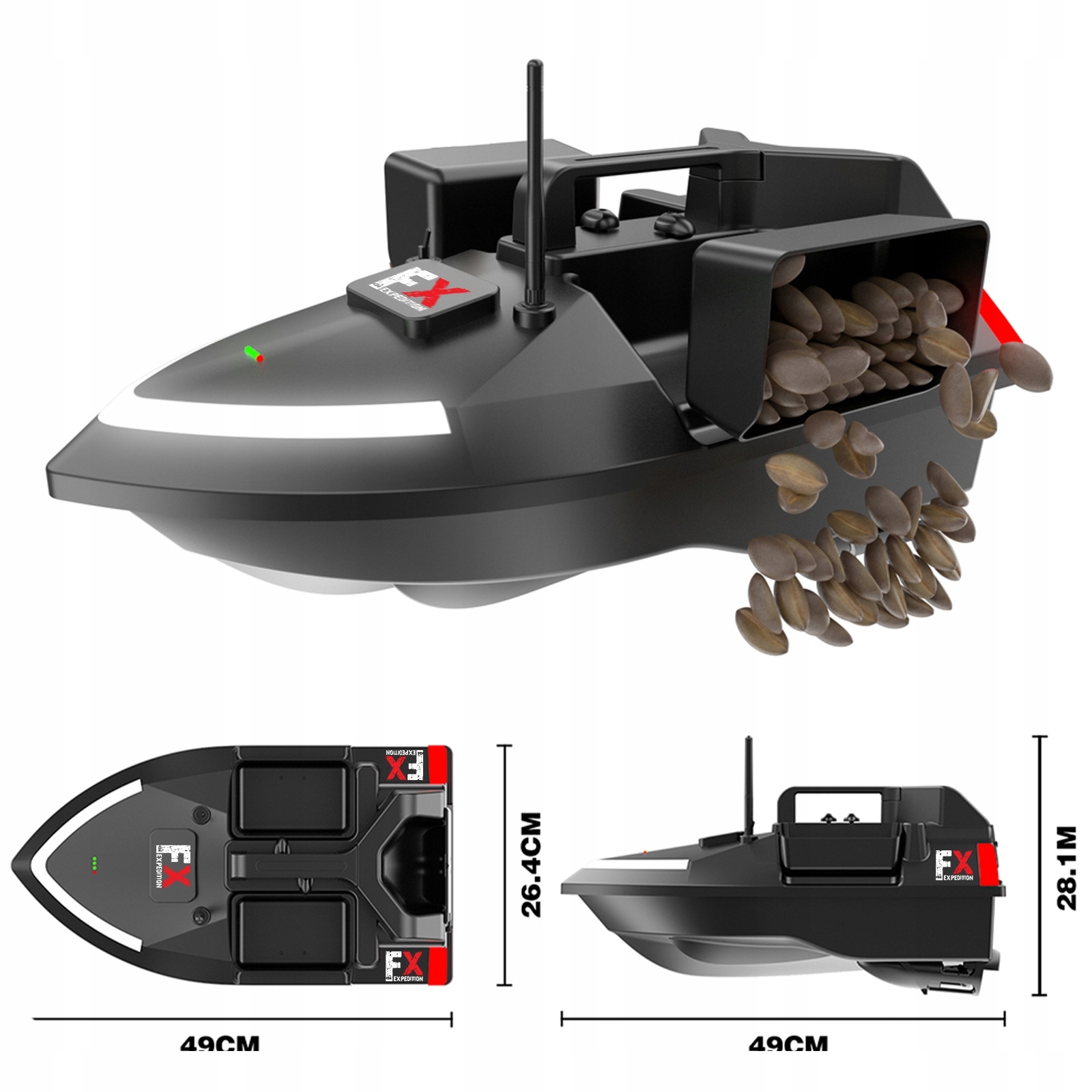 ✅ В комплект входят:лодочка для прикормки, пульт дистанционного управления, аккумулятор, зарядное устройство, сумка для лодки.