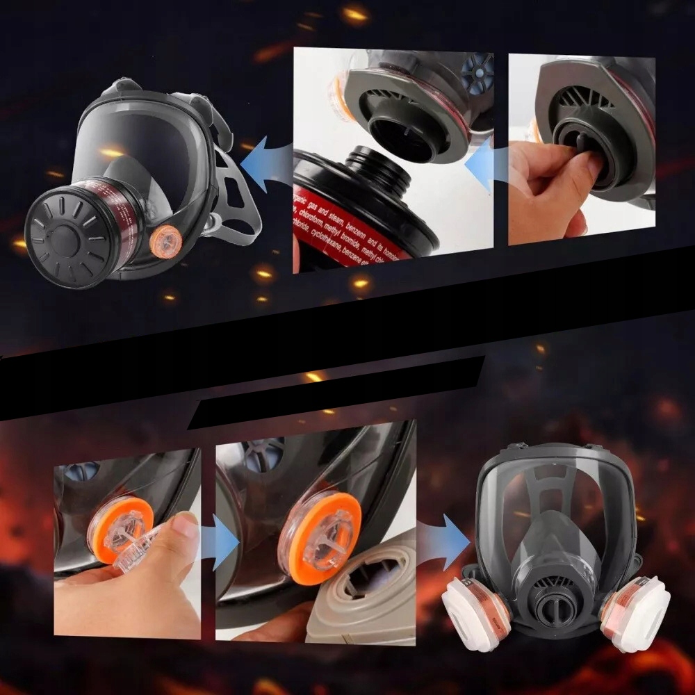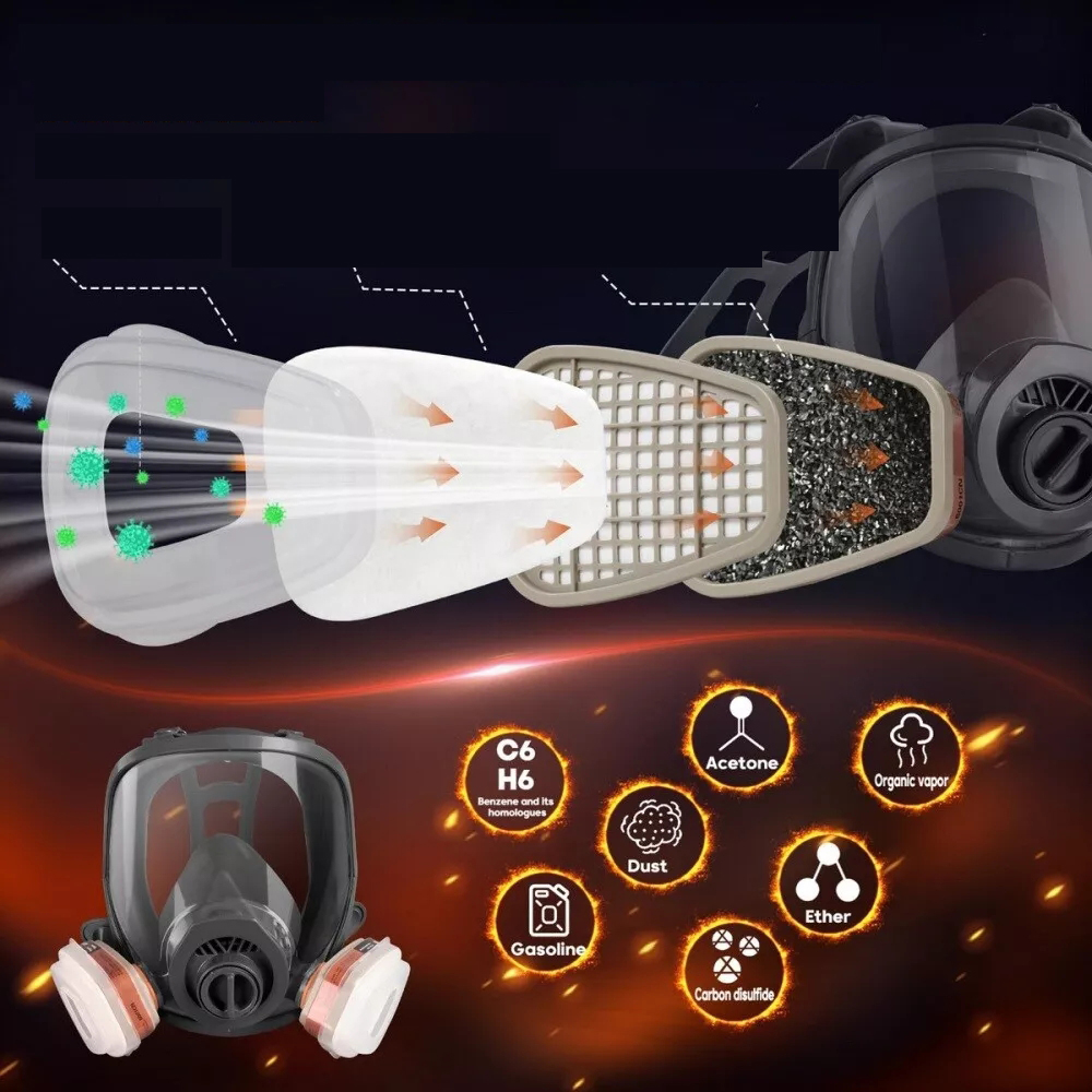 🎐🎐【Долговечность】Корпус респиратора изготовлен из высококачественных материалов. Лицевая часть этой маски изготовлена ​​из плотного силиконового уплотнительного материала, полностью защищающего от пыли и газов. Каркас этого противогаза изготовлен из прочного материала ABS, а козырек из поликарбоната обеспечивает долговечность и стойкость к ударам и химическим веществам, что увеличивает срок службы маски.