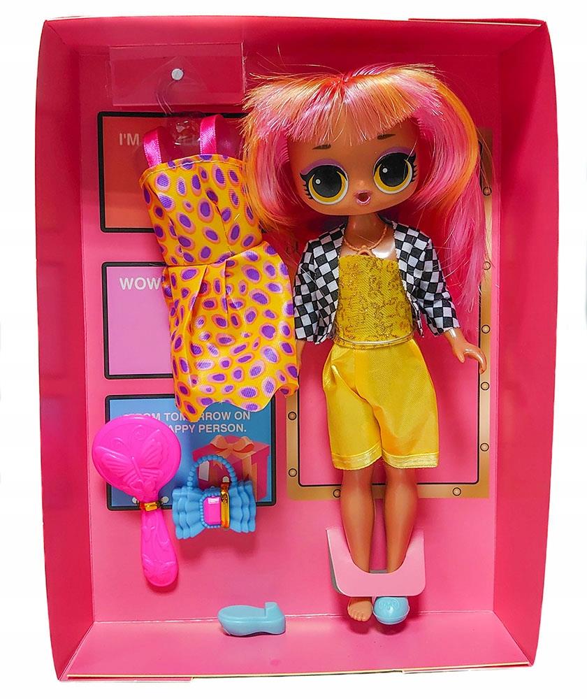 Последнее предложение из серии L.O.L SURPRISE - куклы 20 см с аксессуарами. Куклы имеют фантастический стиль, уникальные прически и макияж. В комплект входят замечательные наряды и дополнительные модные аксессуары. Куклы наверняка порадуют вас своим современным и блестящим внешним видом! Производитель позаботился о том, чтобы ребенок испытал огромную радость, открывая игрушку, ведь в каждом открывающемся элементе находится сюрприз. Коробка куклы выполнена в виде гардероба с примерочной, которой можно пользоваться во время игры.