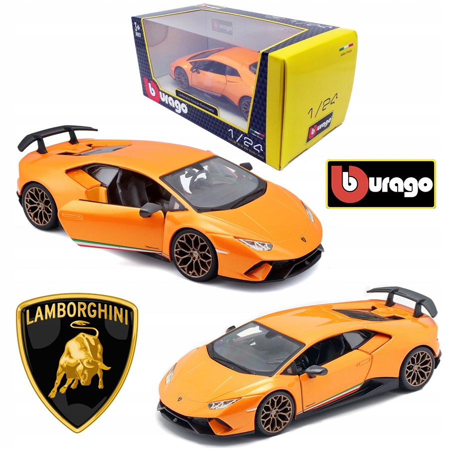 Lamborghini Huracán Performante с первого взгляда заставляет сердца любителей быстрой езды биться быстрее. Обтекаемый силуэт дает представление о характеристиках этого автомобиля, который в миниатюрной версии будет фантастически смотреться на коллекционной полке. Она также подойдет в качестве игрушки для юных автолюбителей, поскольку изготовлена из металла и очень прочна.; Huracán от Bburago в масштабе 1:24 имеет поворотные колеса с резиновыми шинами и пластиковыми элементами. Он был покрашен оригинальной автомобильной краской, цвет которой соответствует хищному духу этого спорткара. У автомобиля открывающиеся двери. Имеет лицензию Automobili Lamborghini. Соответствует европейским стандартам качества и безопасности.