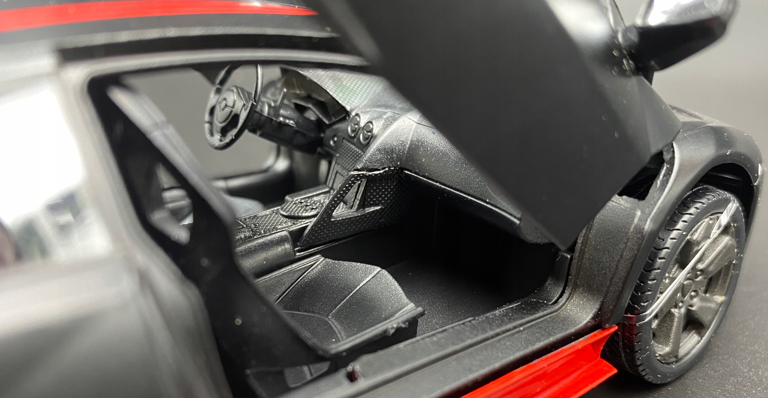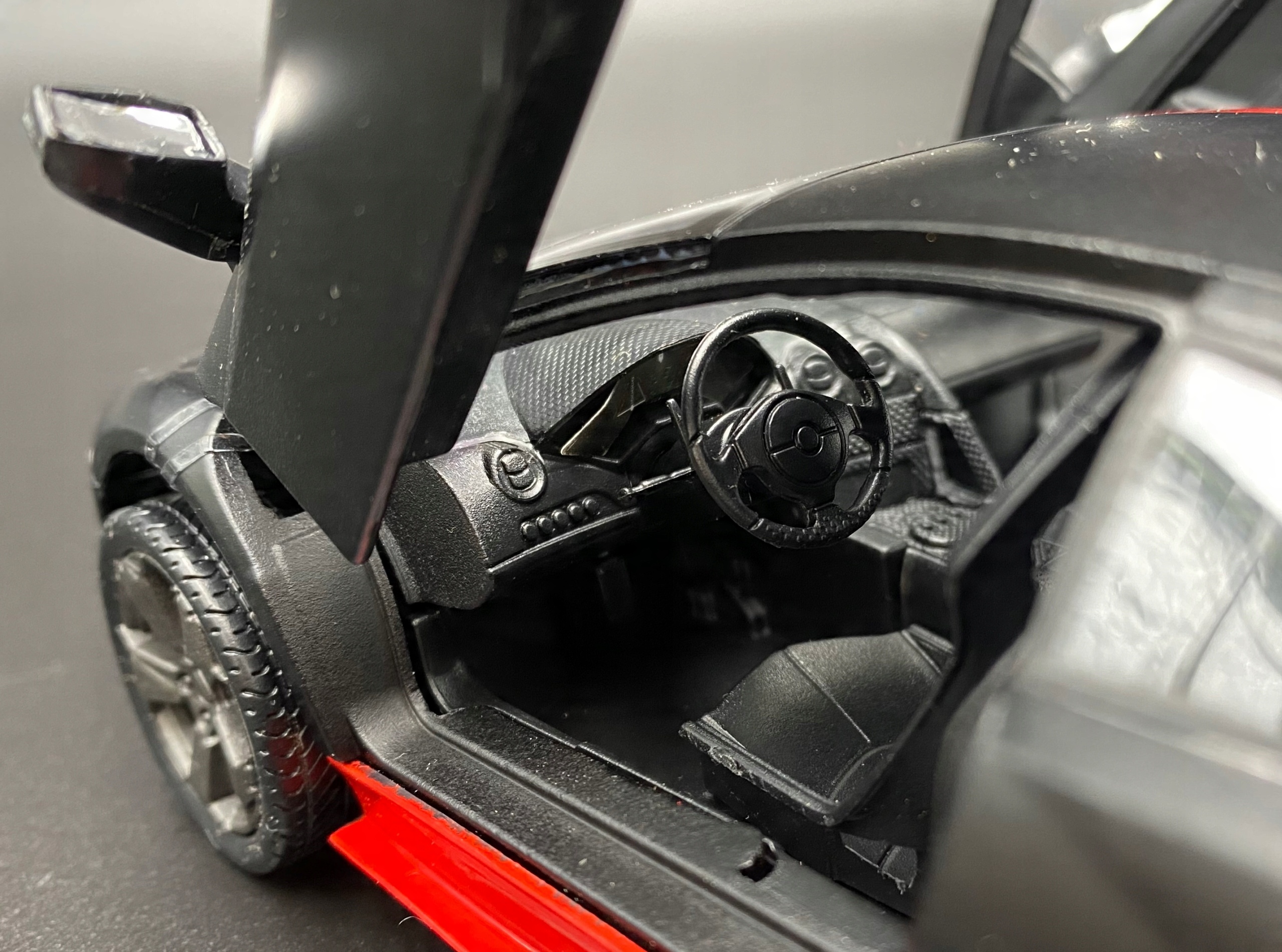 Модель автомобиля отличается вниманием к деталям. Имеет подвижные элементы - двери, колеса, крышку двигателя.