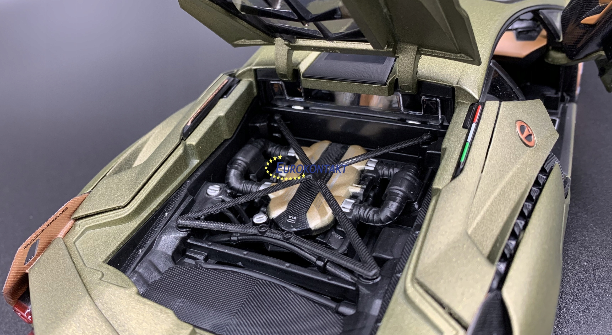 Модель автомобиля Lamborghini характеризуется вниманием к деталям. Имеет подвижные элементы - двери, крышку двигателя и багажник.