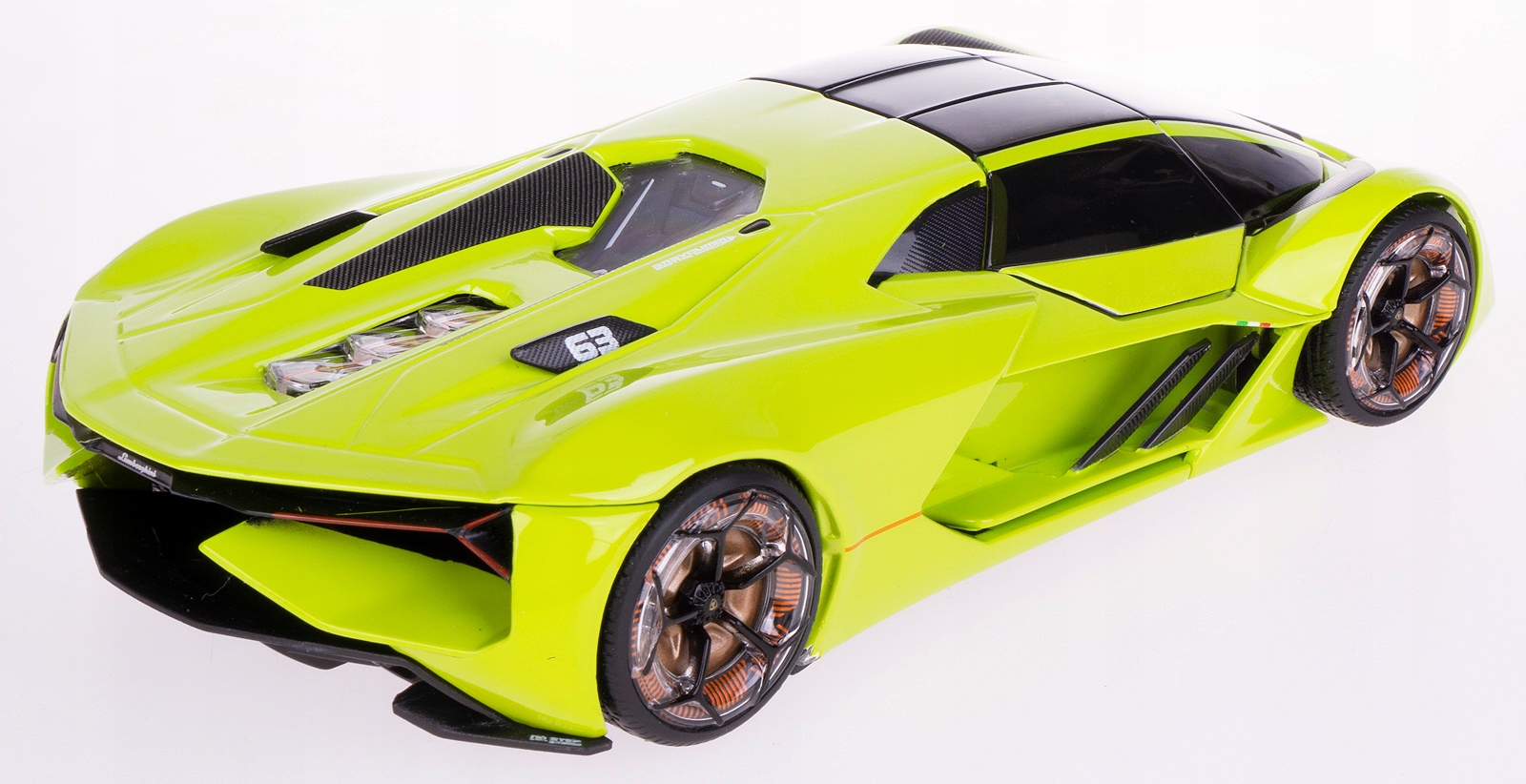 Модель LAMBORGHINI TERZO MILLENNIO изготовлена из металла и пластика с резиновыми шинами в масштабе 1:24 от BBURAGO.