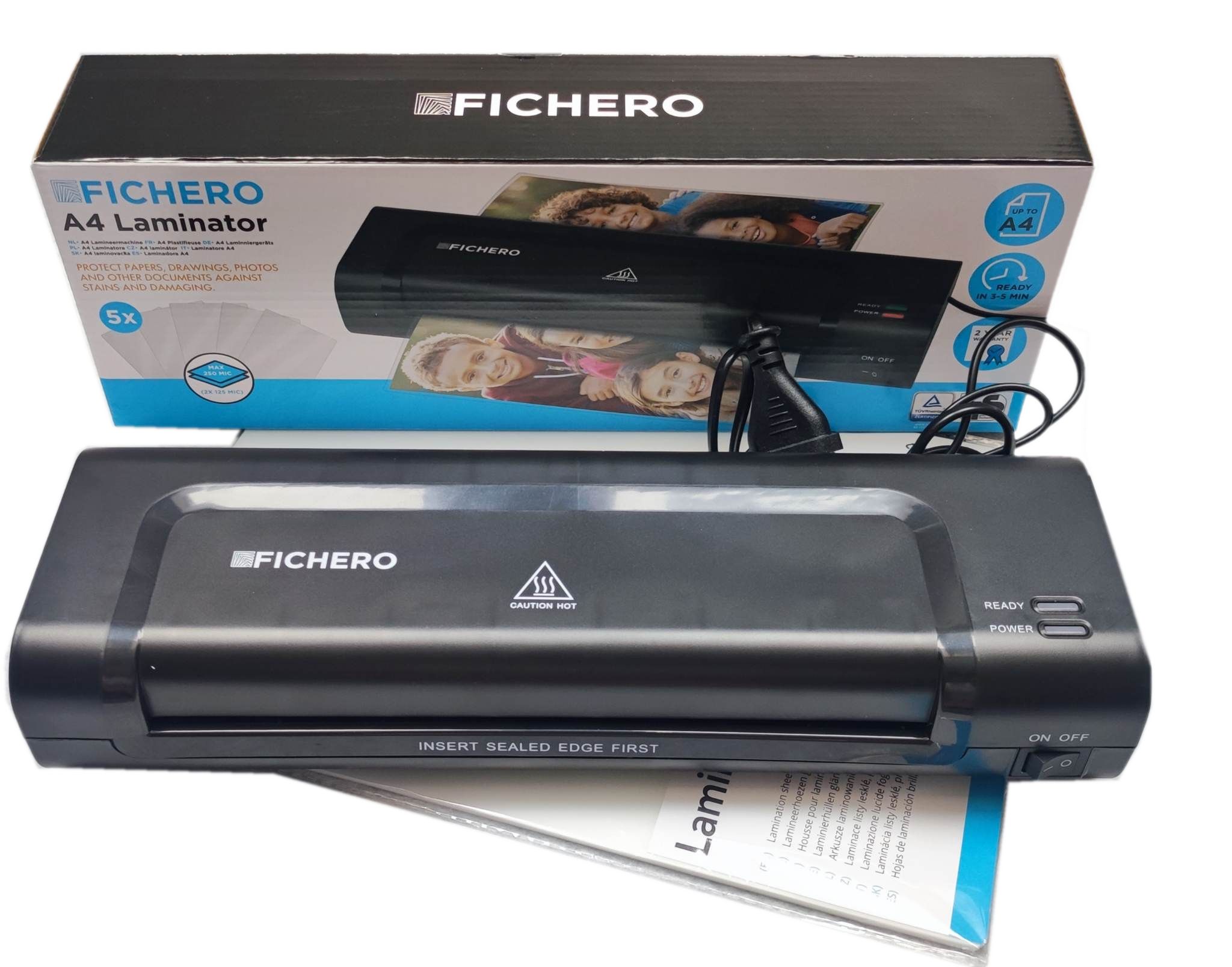 НАБОР ЛАМИНАТОРА FICHERO ДЛЯ ЛАМИНИРОВАНИЯ ФОТО А4 + 5 ЛИСТОВ А4