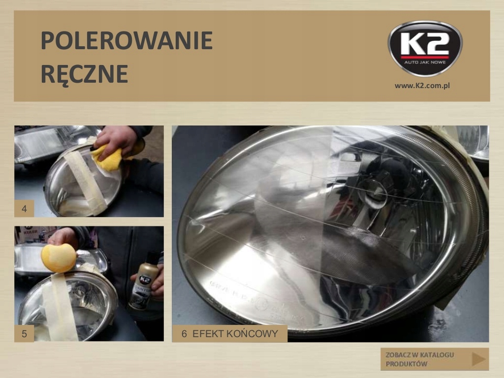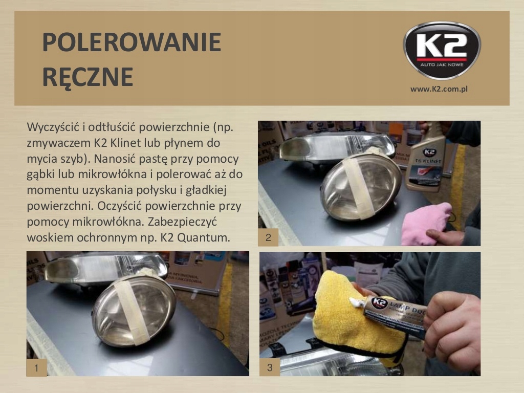 Паста K2 LAMP DOCTOR можно смело использовать для других прозрачных элементов, например оргстекло в мотоциклах, фургонах, лодках и даже самолетах.