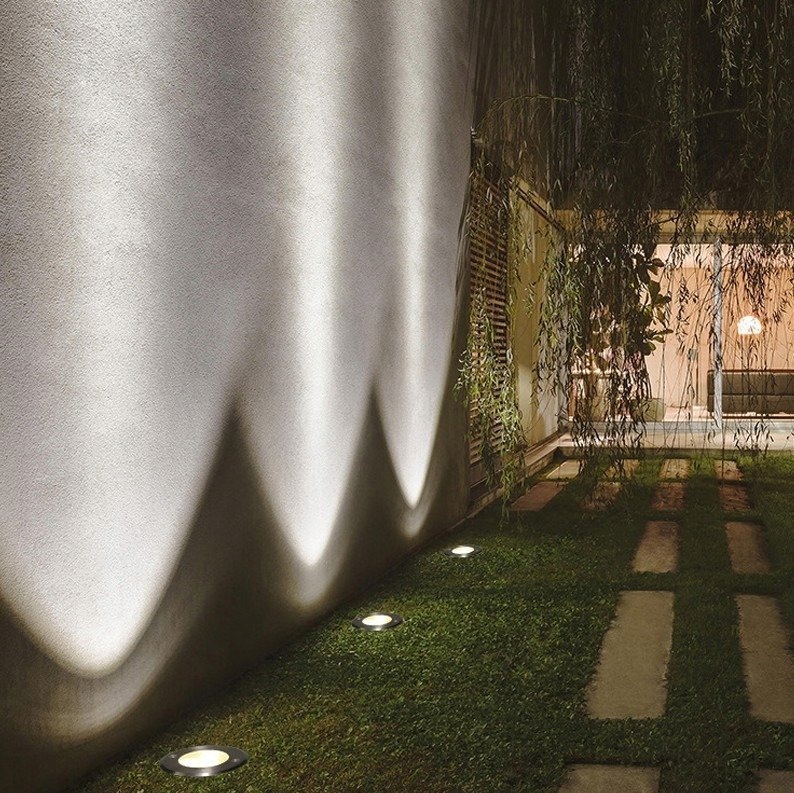 - благодаря узкому углу Благодаря световому излучению, полученному с помощью линз, светодиодный напольный светильник подходит для освещения узких вертикальных поверхностей и таких объектов, как угловые стены, стены, разделяющие своды или оконные ниши, колонны, мачты, кусты и деревья.