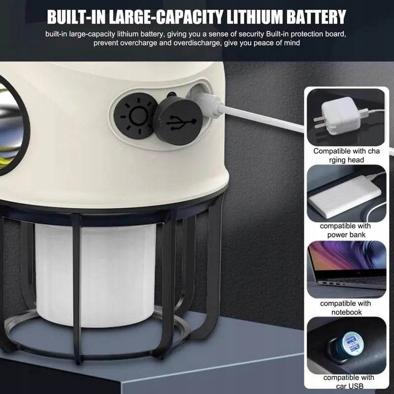 Световое оборудование: 6 передач, кемпинговый фонарь, белый свет - кемпинговый светильник, желтый свет - фонарик, белый свет - дважды щелкните переключатель на любой передаче, чтобы открыть соответствующий режим мигания цвета