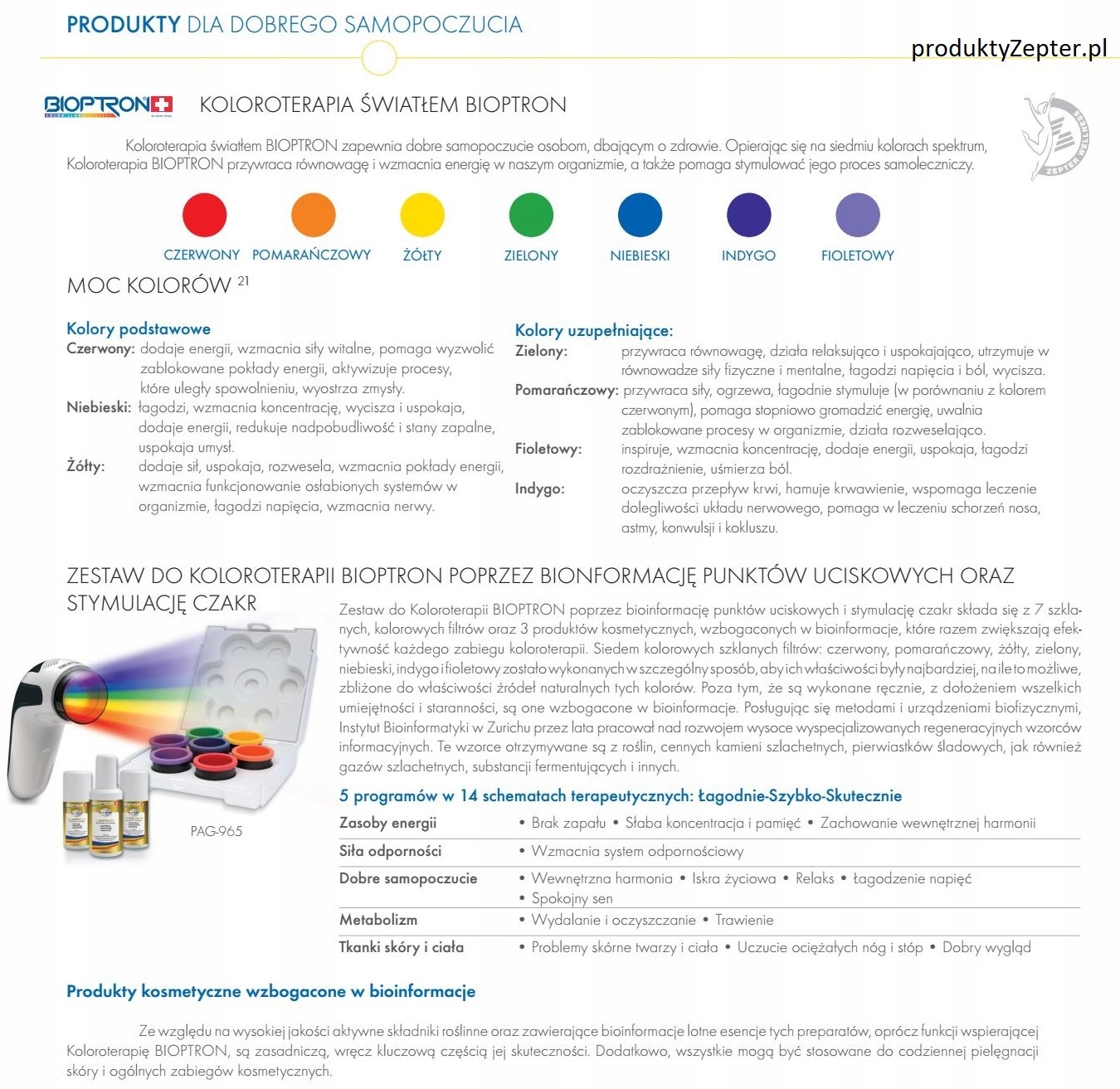 Цветотерапия Zepter БИОПТРОН использует биоинформацию