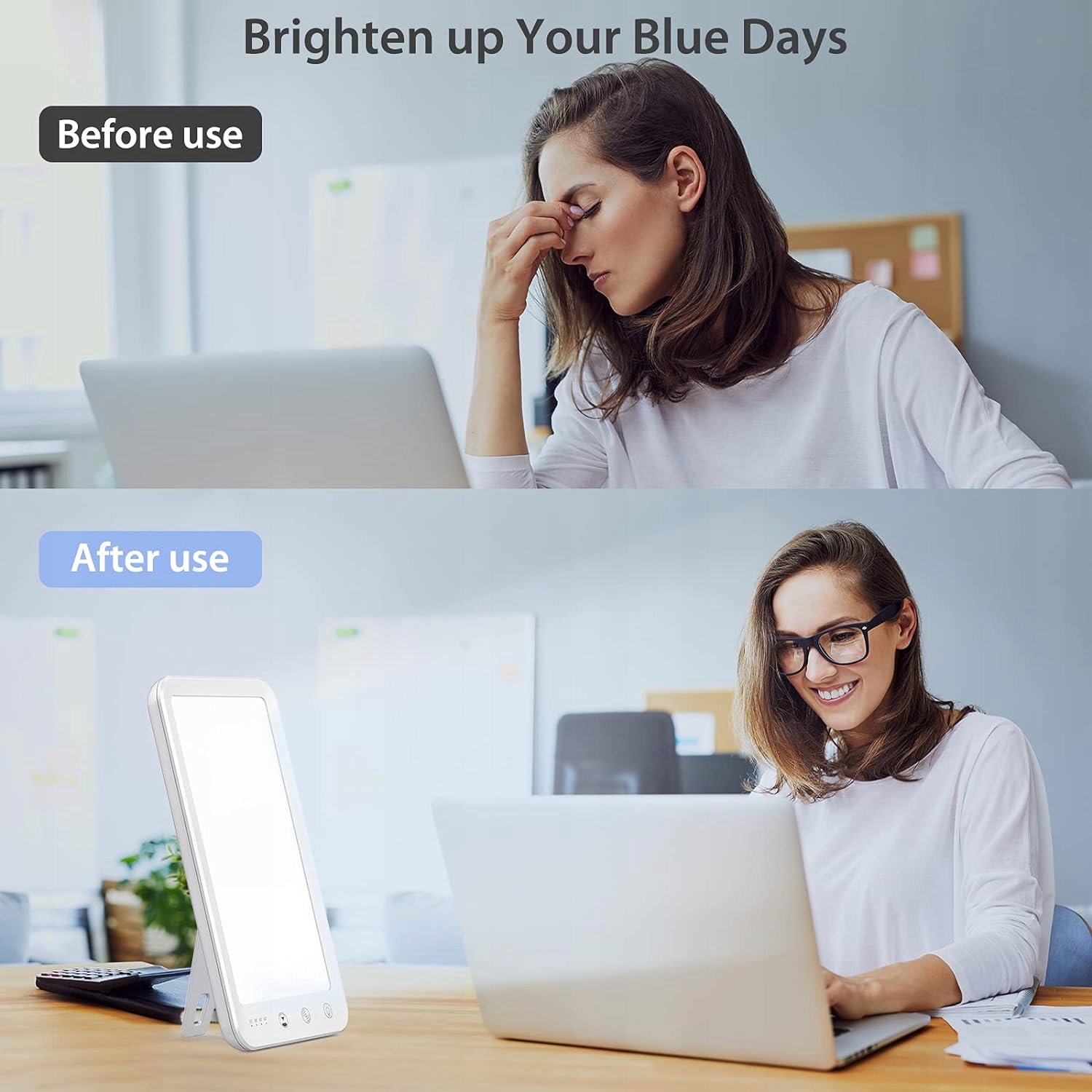 Дневная лампа с яркостью из 10 000 роскошных и ультрафиолетового излучения: благодаря моделированию дневного света, дневная лампа обеспечивает приятный свет без влияния мерцания и без ультрафиолетовых лучей, помогает предотвратить расстройства баланса, жесткое настроение, усталость, энергию и вместо этого обеспечивает положительное качание настроения