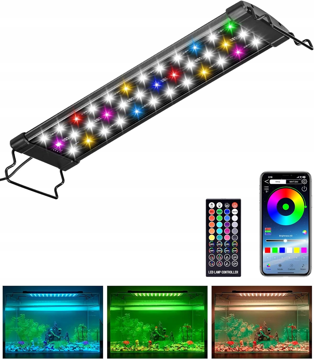 Лампа для акваріума, RGB LED підсвічування, Bluetooth управління, регулювання 40-55